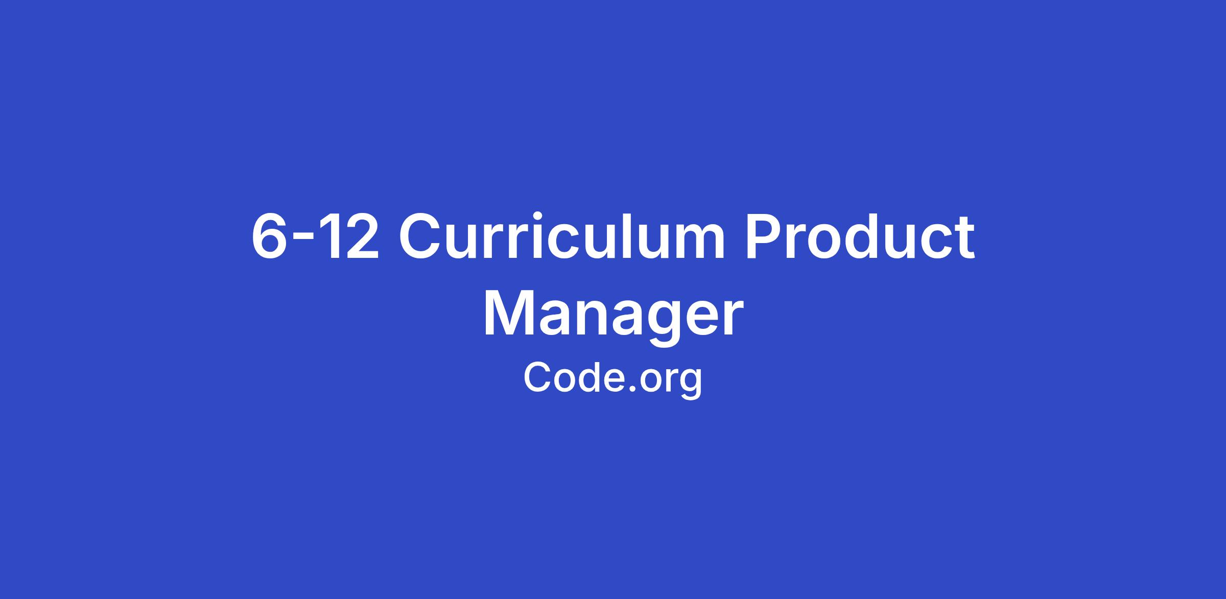 Code.org is seeking a Curriculum Product Manager to lead the work of our 6-12 Curriculum team. In this role you will identify, define, and ship CS and AI curriculum products for middle and high school students, grades 6-12, leading and managing a team of content developers and collaborating cross-functionally. Code.org’s 6-12 curriculum products, including CS Principles, CS Discoveries, and AI Foundations, serve hundreds of thousands of students across the U.S. and around the globe each year. The product manager will build on the curriculum’s strengths while spearheading the development of new offerings addressing teacher demand, AI integration, and emerging pathways for high school students.