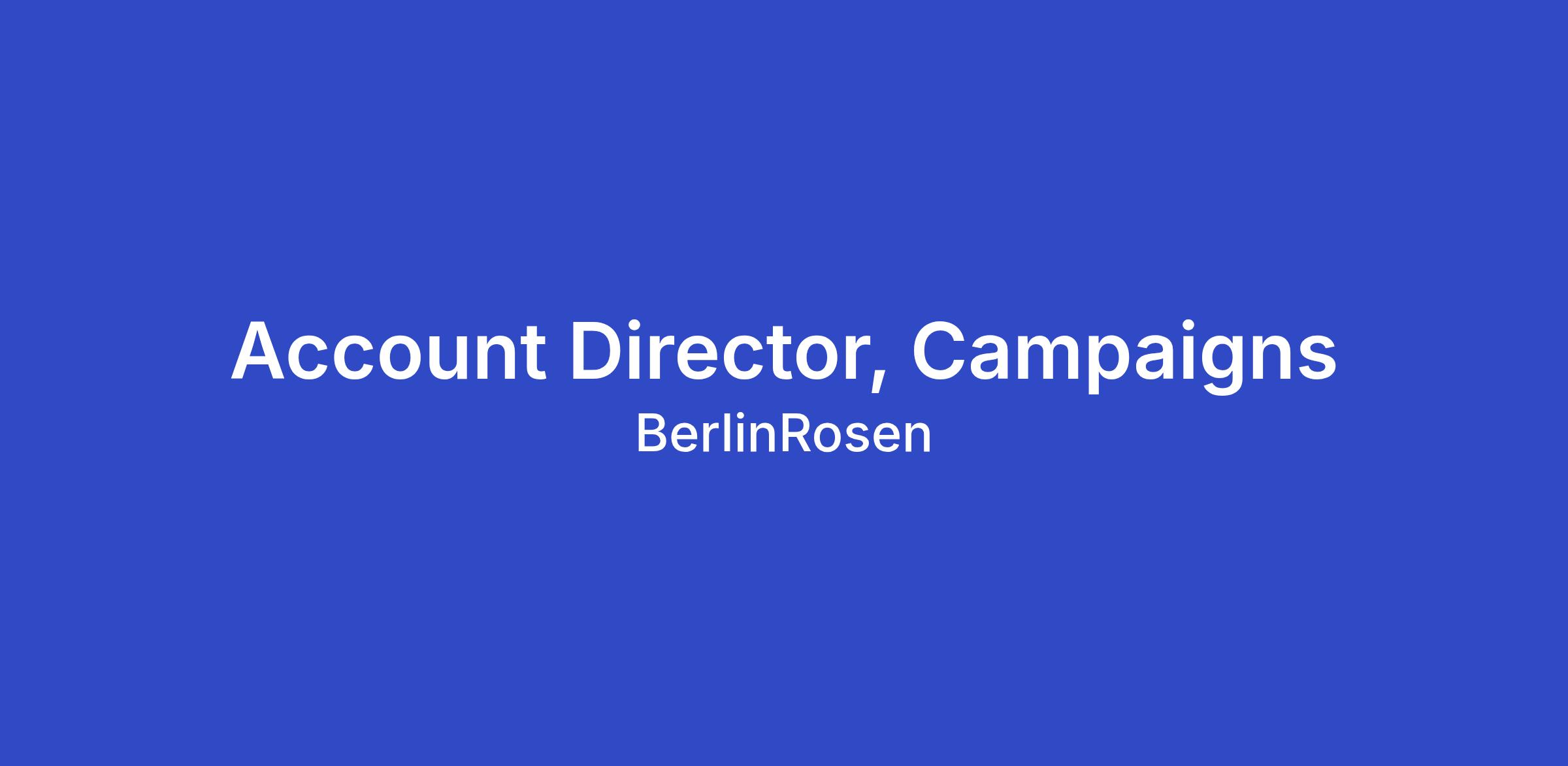 Role location: This role is based in our New York, N.Y. or Washington, D.C. office, with New York being the preferred location. The BerlinRosen Campaigns team is in-office at least 3+ days per week.