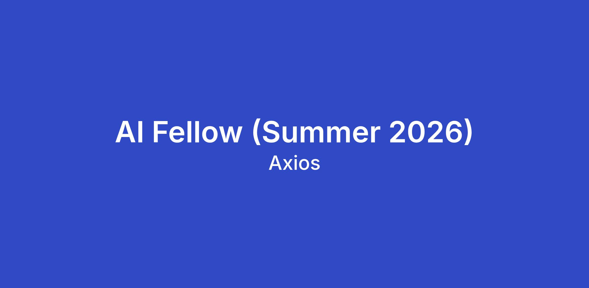 The big picture: AI is now central to how Axios builds, operates and innovates. We believe AI is a force multiplier - not a side experiment, not a siloed function, but a capability we are embedding at every level and in every role across the company. This summer, we are hiring an AI Fellow to work directly with our co-founders as an in-house AI guide and builder. One seat. Three months. Real impact.