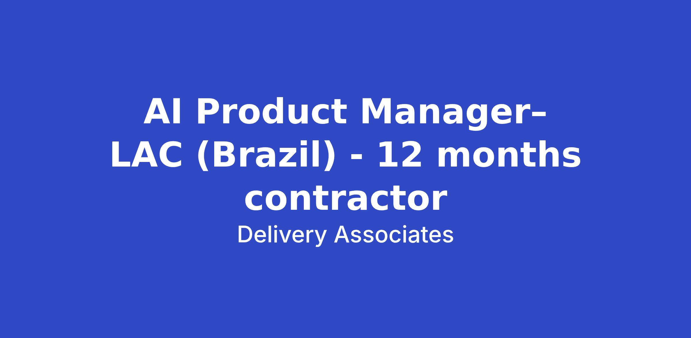 AI Product Manager– LAC (Brazil) - 12 months contractor