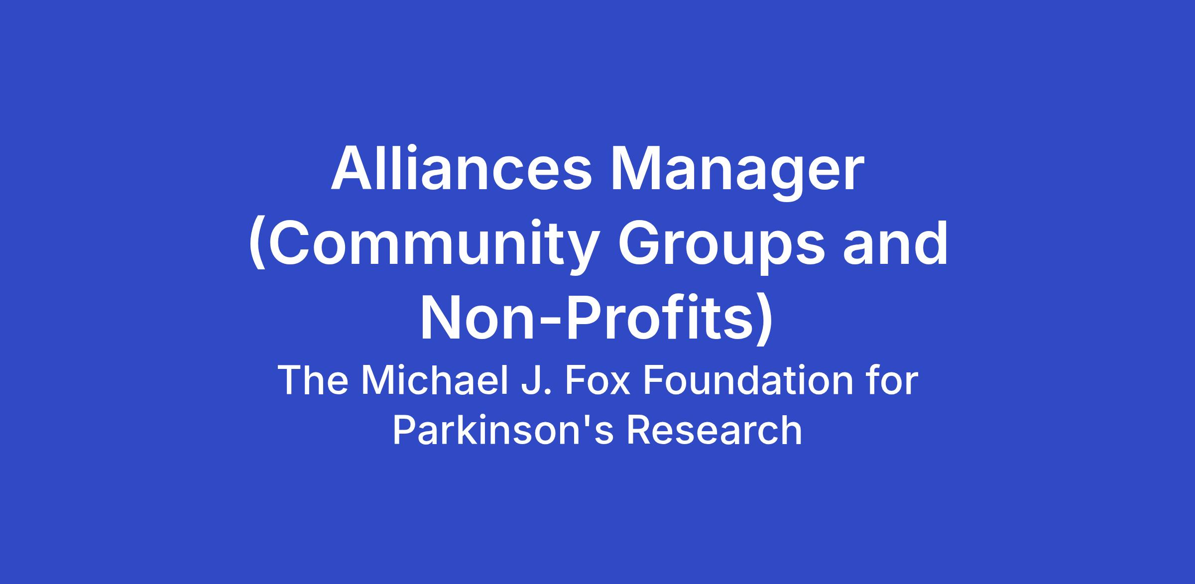 The Michael J. Fox Foundation for Parkinson’s Research (“the Foundation”) is seeking top talent for its Alliances Manager position. Reporting to the Director of Research Alliances, this position services all inbound inquiries from a variety of stakeholders with a focus on community groups and other like-minded non-profit organizations supporting the team’s critical business development and stewardship activities across the partnership lifecycle. This role stewards prospective partners by aligning external partners’ needs to the Foundation’s mission and directing them to relevant resources and partnership opportunities that the organization has to offer. This role assists with the team’s cultivation of priority partnerships and programs designed to increase the Foundation’s engagement with the industry. This role collaborates cross-functionally with internal teams, members of the scientific community, technical experts and government, non-profit, industry, and corporate sectors.