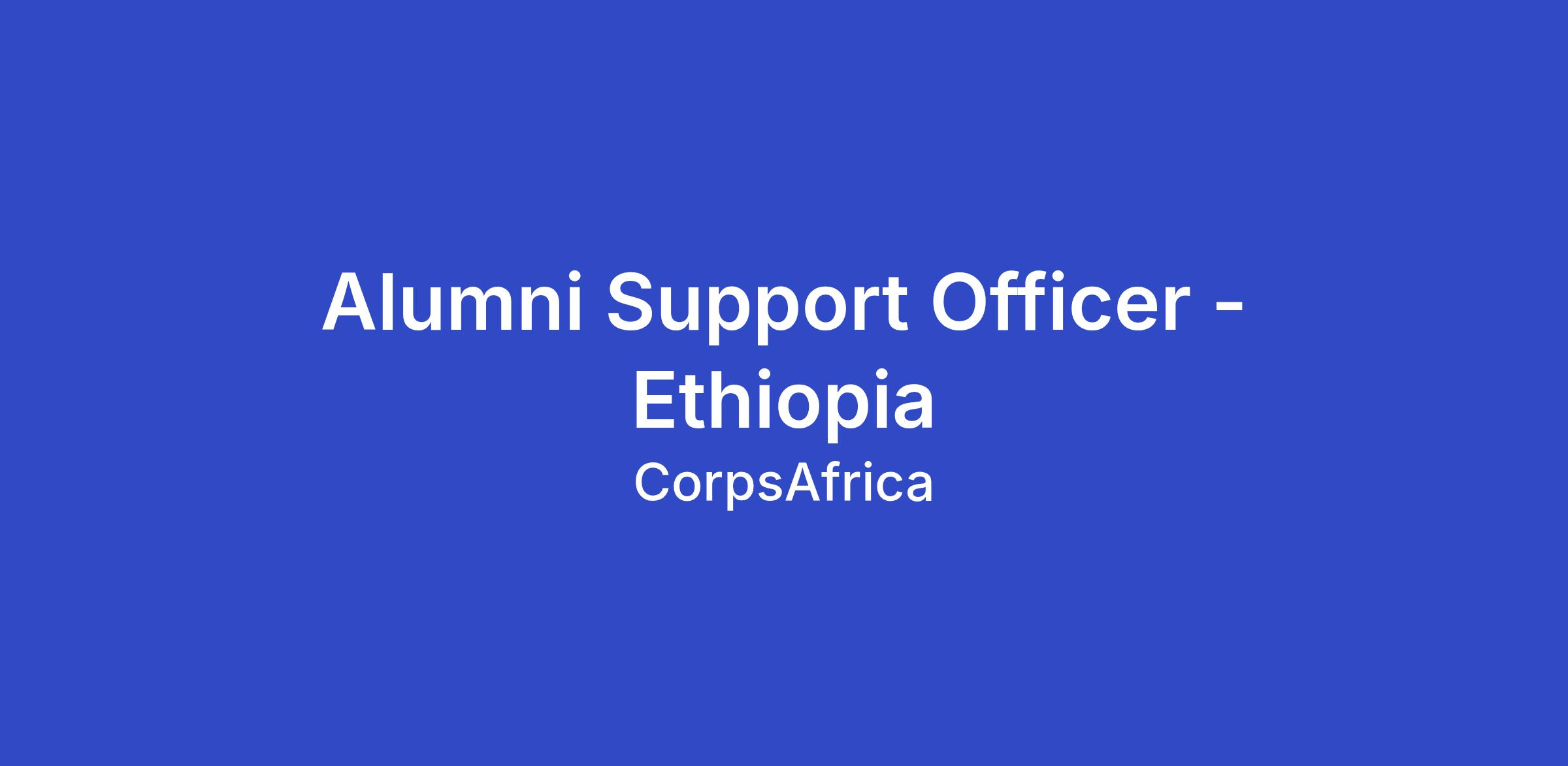 The Alumni Support Officer will directly support the success of former CorpsAfrica/Ethiopia Volunteers in their personal lives and professional careers. He/She will maintain close contact with alumni, create engagement and skill-building opportunities for alumni to stay involved with CorpsAfrica, and provide professional support services to alumni, including hiring events and professional development opportunities. This le will support and collaborate with other alumni support officers and alumni staff in the Global Support Office to coordinate programs like the Entrepreneurship Incubator and Scholarship Match program.