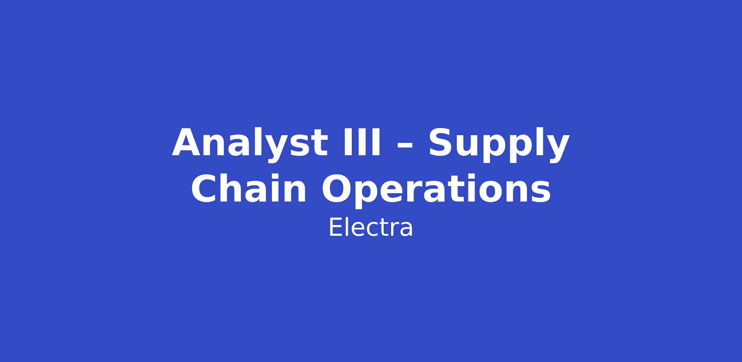 The Supply Chain Operations Analyst III is a fully qualified professional responsible for leading advanced analytics, process design, and operational optimization initiatives within the Procurement and Supply Chain function. This role applies deep subject matter expertise to evaluate complex data, assess unusual circumstances, and develop innovative solutions that support scaling operations. The Analyst III works independently, with review at critical milestones, and serves as a trusted advisor to cross-functional stakeholders.v