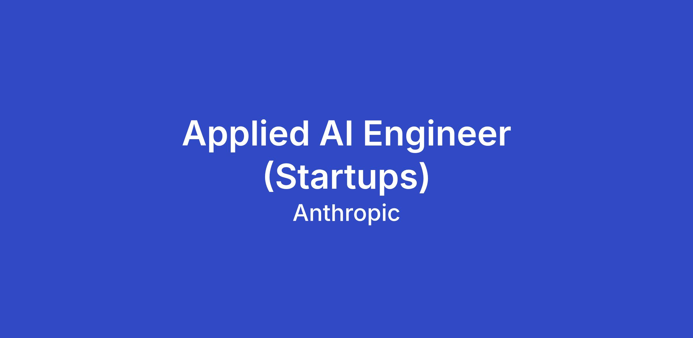 As an Applied AI Engineer on the Startups team at Anthropic, you will be a trusted technical advisor helping the top AI-native startups build on the Claude Developer Platform as they grow from early product to scale. You'll lead deep technical engagements, partnering directly with startup engineering teams to help them develop their products on top of Claude—advising on implementation, agent design, and working alongside them to build at the frontier of AI.