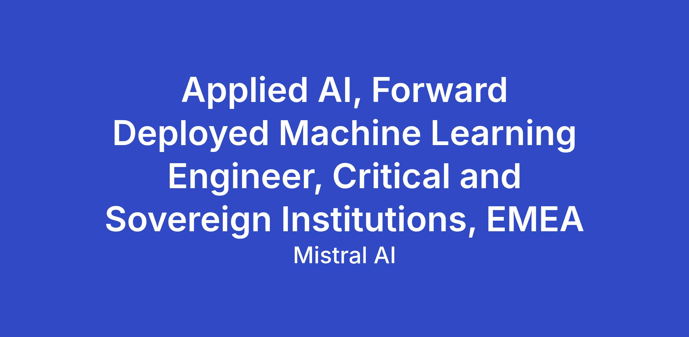 The Applied AI for Critical and Sovereign Institutions team is Mistral’s specialized unit dedicated to delivering high-impact, secure AI solutions for institutions and organizations operating in highly regulated and strategic environments. We work hand-in-hand with clients to design, deploy, and maintain AI systems that meet the highest standards of reliability, security, and operational excellence.