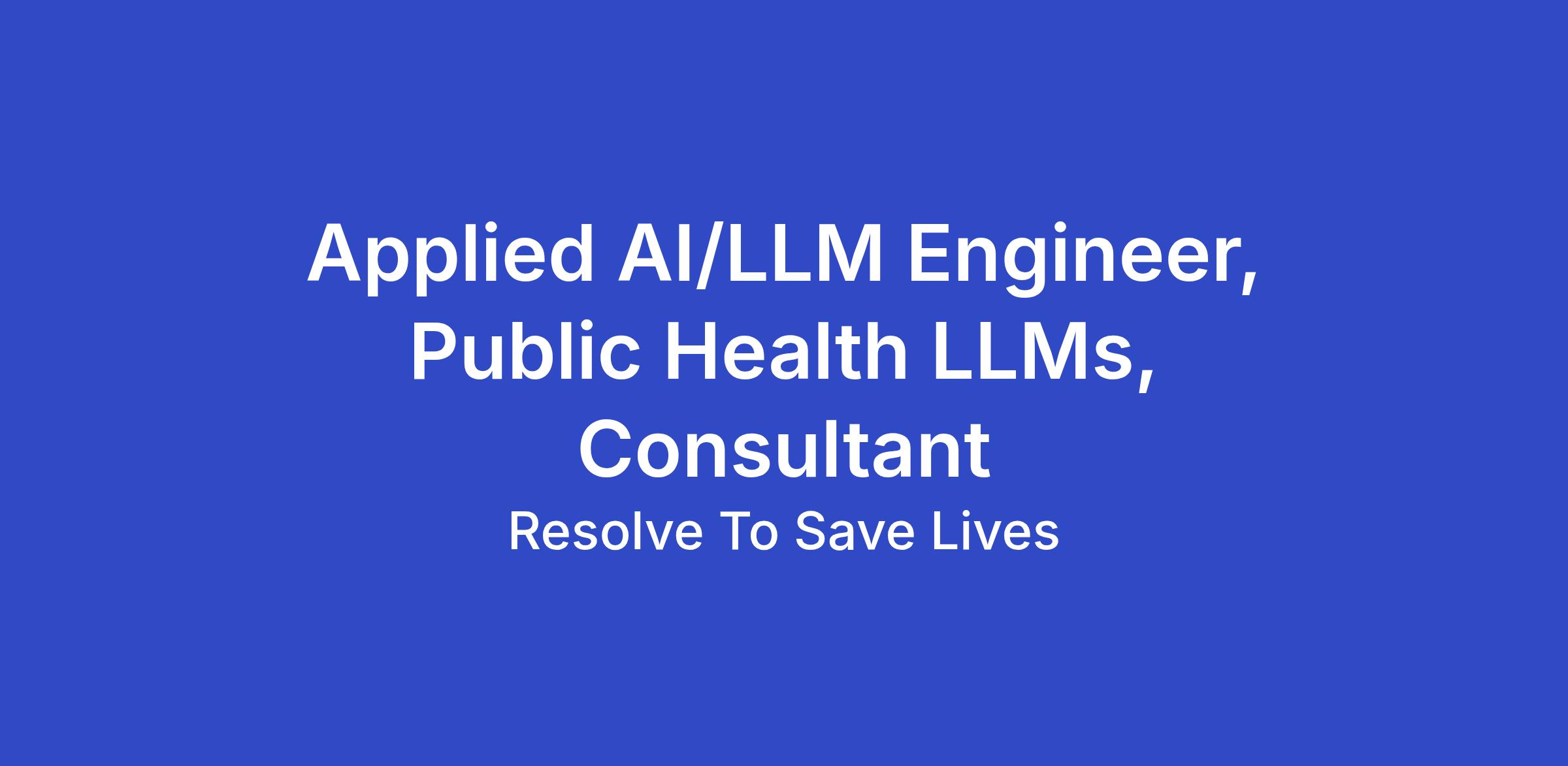 Resolve to Save Lives is looking for an Applied AI/LLM Engineer Consultant to support our innovative team, focusing on the exciting field of Large Language Models (LLMs) in the context of Public Health. In this role, you will contribute to the design, fine-tuning, deployment, and evaluation of AI/ML systems based on pre-trained models (e.g., LLaMA, Mistral, GPT, Phi) that help ease the lives of healthcare workers and clinicians. You will work closely with back-end and mobile engineers to bring cutting-edge AI capabilities to life.