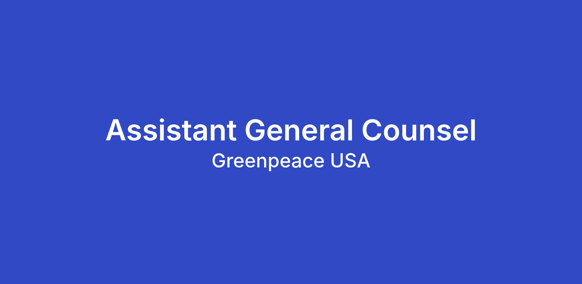 The Assistant General Counsel may also work with outside counsel to assist in managing litigation to defend activists. Additionally, this role provides legal guidance and training to staff on a wide range of issues with emphasis on non-profit corporate, tax, employment, labor, contract, campaign finance, intellectual property and environmental matters. The Assistant General Counsel may also collaborate with attorneys in the global Greenpeace network to optimize movement lawyering principles, mitigate and reduce cross-organizational liability issues, especially related to global campaign activities.