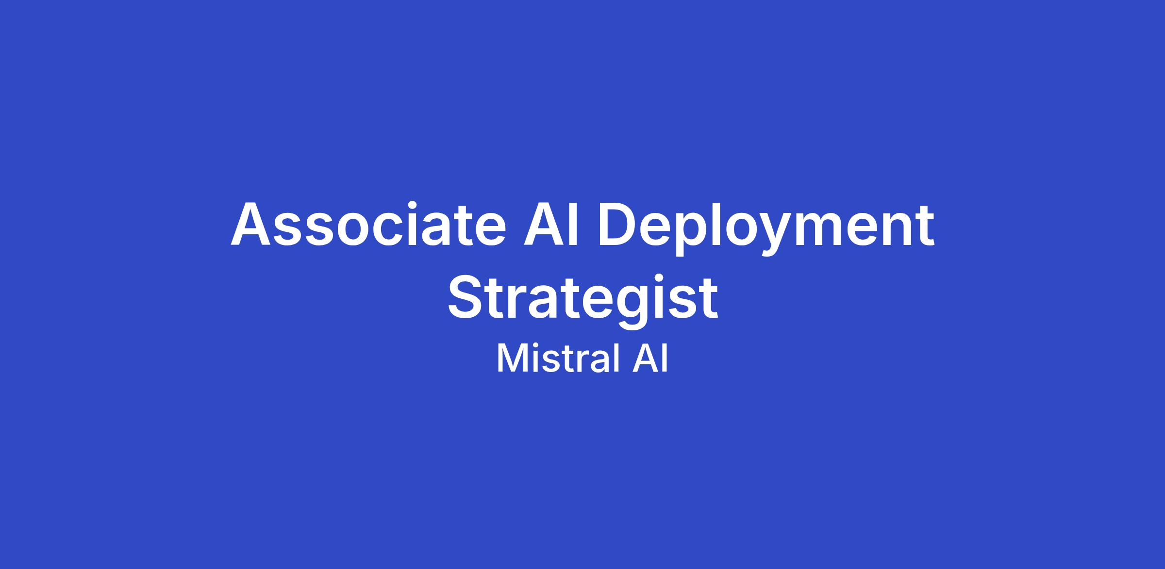 As an Associate AI Deployment Strategist, you will support the adoption and deployment of Mistral’s AI solutions, working closely with customers and internal teams to bridge the gap between strategic vision and practical implementation. This role is ideal for early-career professionals eager to learn, grow, and contribute to transformative AI projects in a collaborative environment.