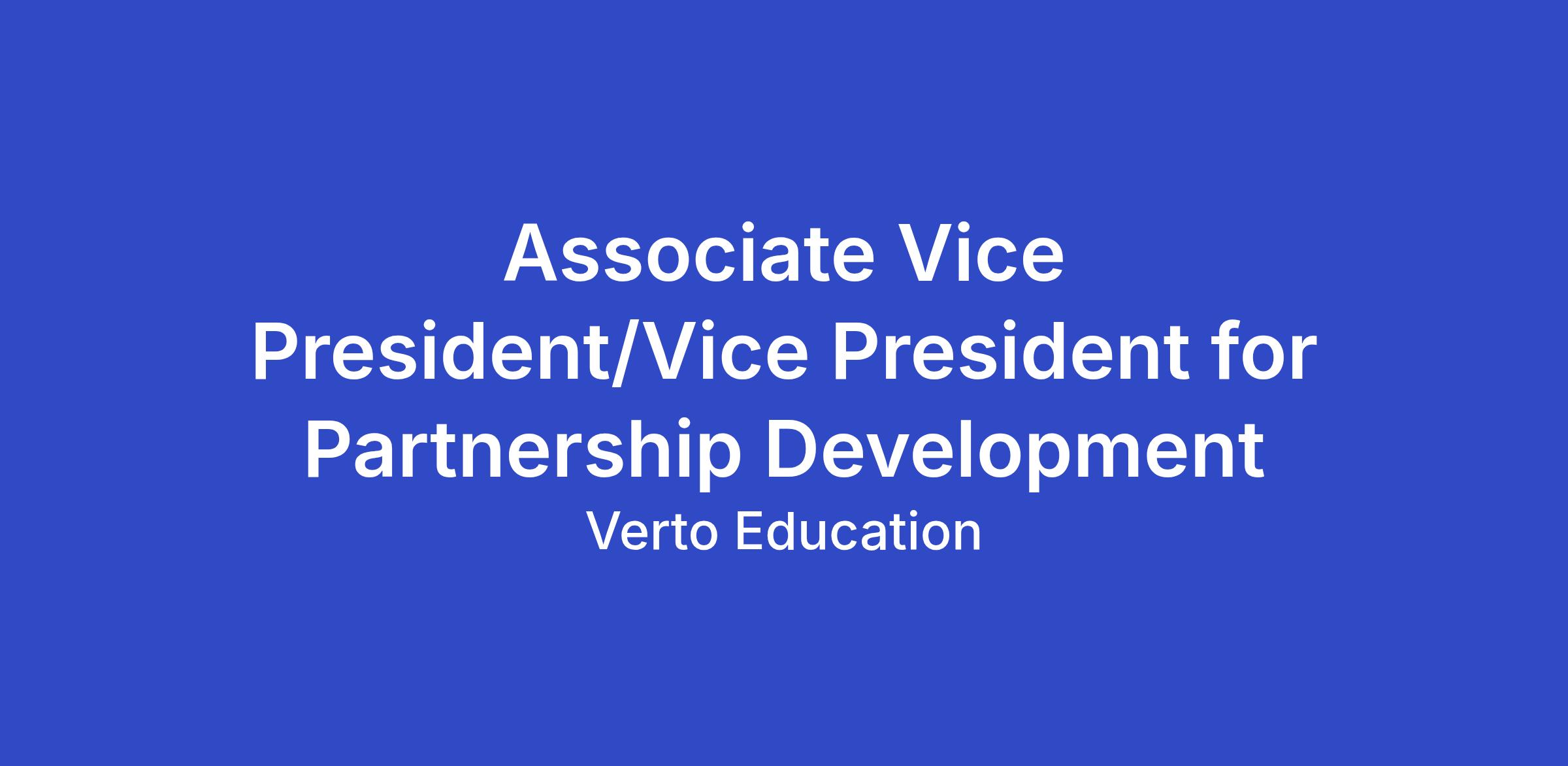 The Associate Vice President/Vice President for Partnership Development (AVPPD) provides strategic leadership and sets the vision for the development, significant growth, and execution of new university partnerships to advance the organization’s mission and ambitious growth objectives. Accountable for the strategic health, long-term sustainability, and significant expansion of mutually beneficial partnerships, this role directly drives substantial increases in enrollment, enhances brand awareness, and expands pathways for Verto participants through proactive innovation and the strategic evolution of Verto’s enrollment programs and services.