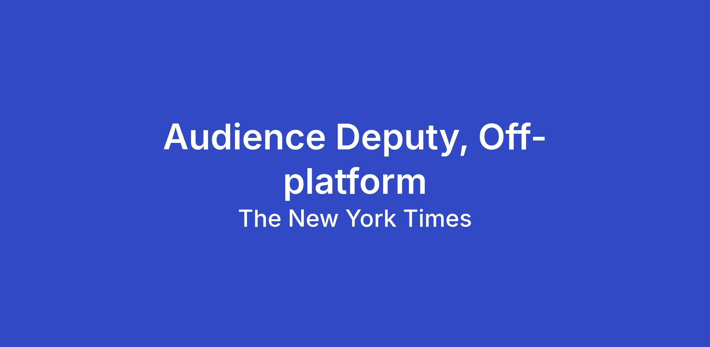 The New York Times is seeking a creative, strategic and operationally-minded leader to serve as the Audience Deputy, Off-platform. Reporting to the Newsroom Audience Director, you will be the primary architect of our strategy for reaching and engaging readers on search and social platforms, ensuring The Times’s journalism remains visible and relevant as the digital landscape is reshaped by AI and shifting platform dynamics.