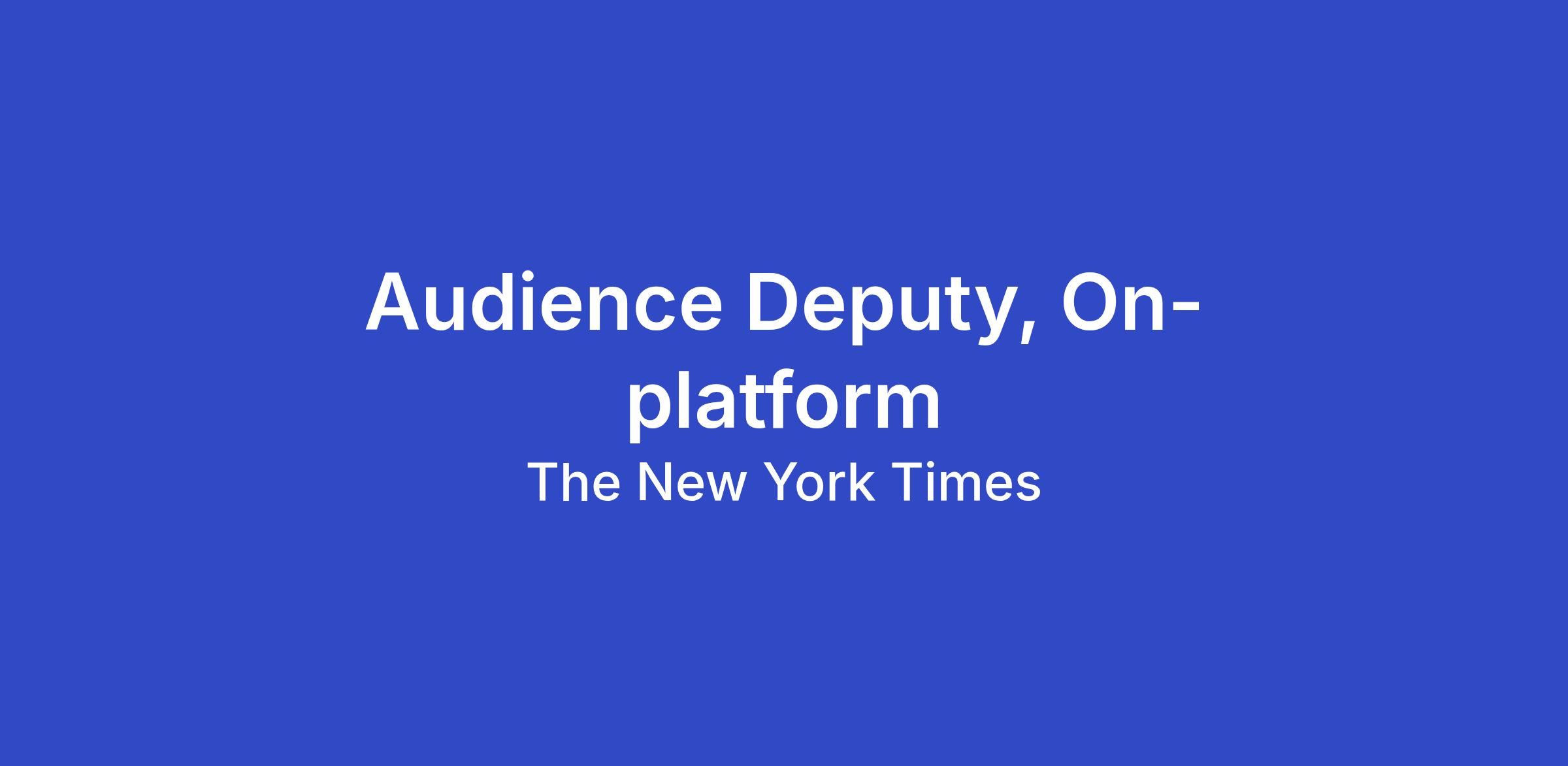 The New York Times is seeking a strategic and operationally-minded leader to serve as the Audience Deputy, On-platform. Reporting to the Newsroom Audience Director, you will be the primary architect of our strategy for understanding how we might grow audience and deepen engagement on our owned surfaces, including but not limited to the home screen, push alerts, email and community products.