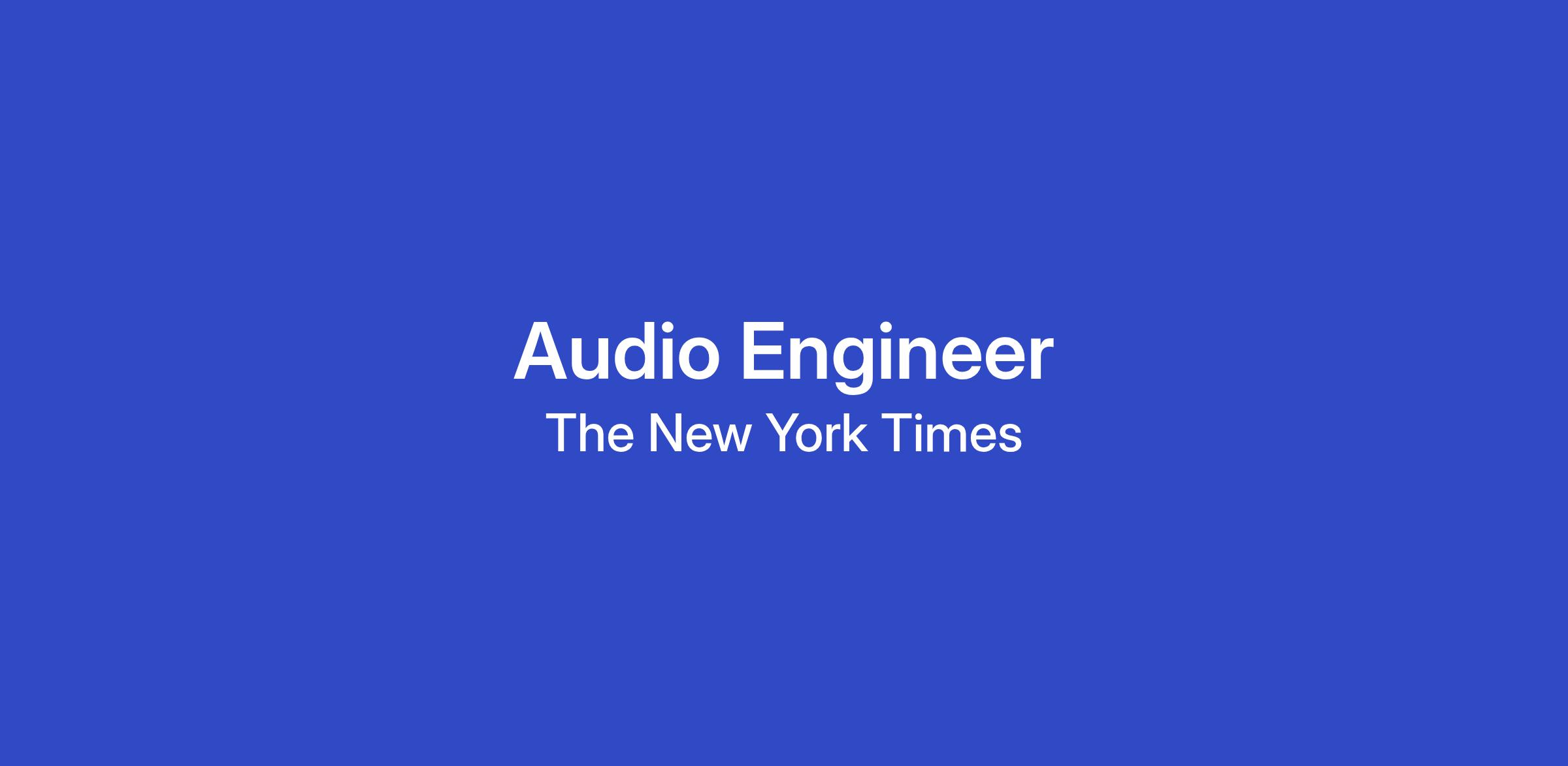 The New York Times audio team is seeking an Audio Engineer to work with The Ezra Klein Show (EKS) team, and on other products across the Opinion Audio portfolio. The audio engineer will play a crucial role in our post-production processes, and play a significant role in the ongoing development of audio best-practices and video integration on the EKS team by working closely with the Senior Audio Engineer, show producers and editors, as well as New York Times reporters and contributors.