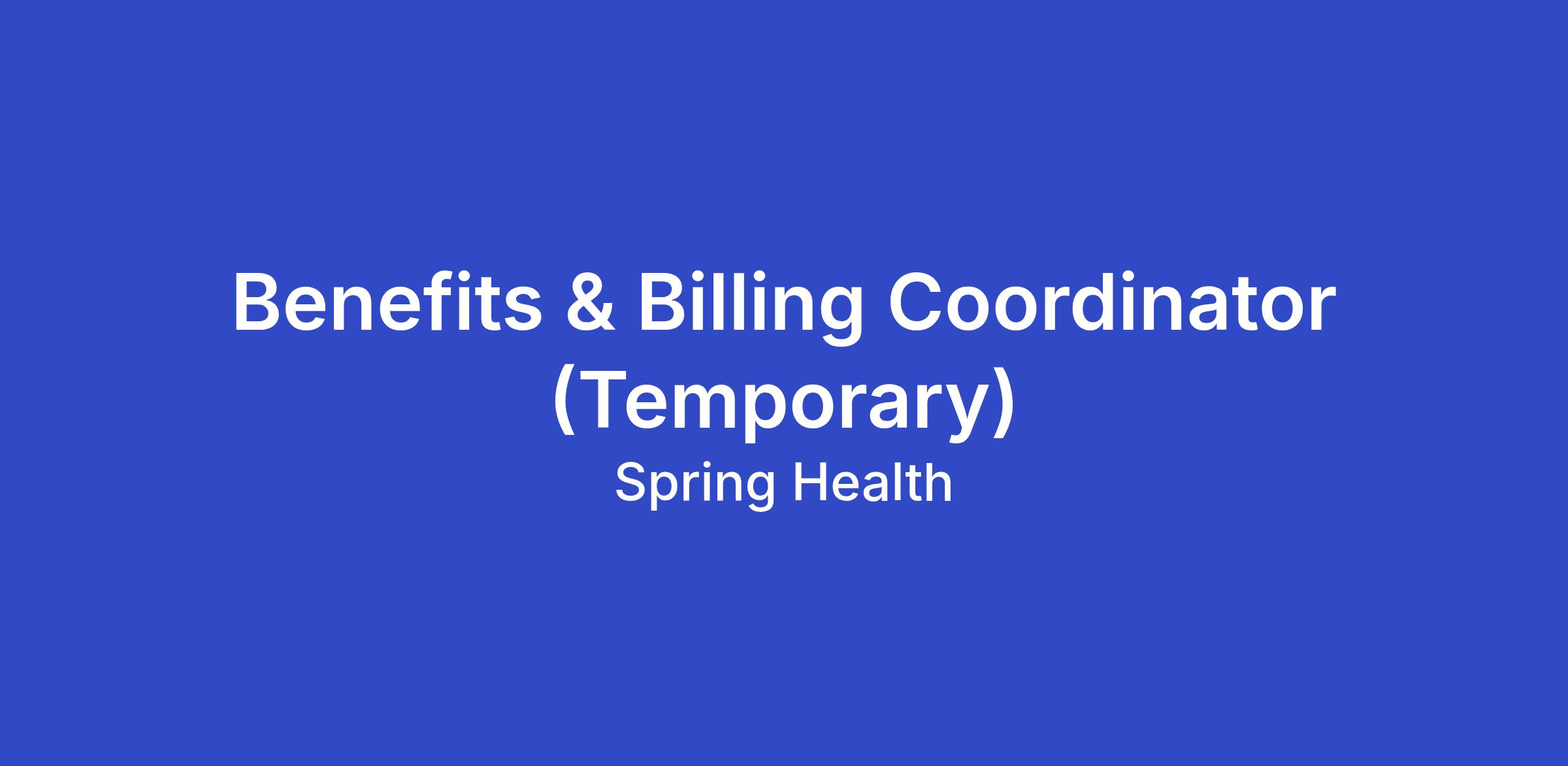 Benefits & Billing Coordinator (Temporary)