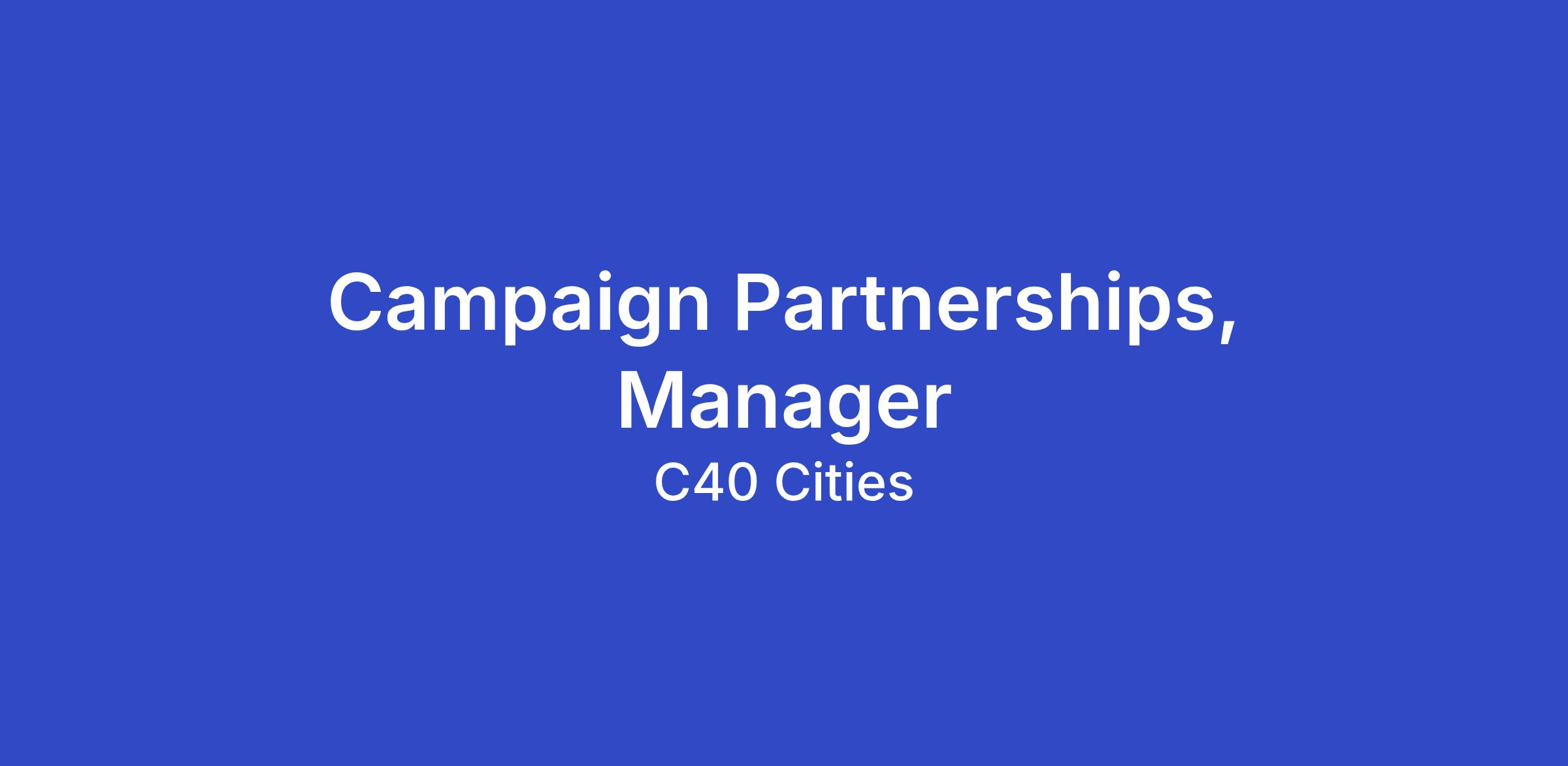 You will be responsible for helping to drive impactful campaign partnerships to increase, strengthen and showcase stakeholder support for mayoral climate action.
