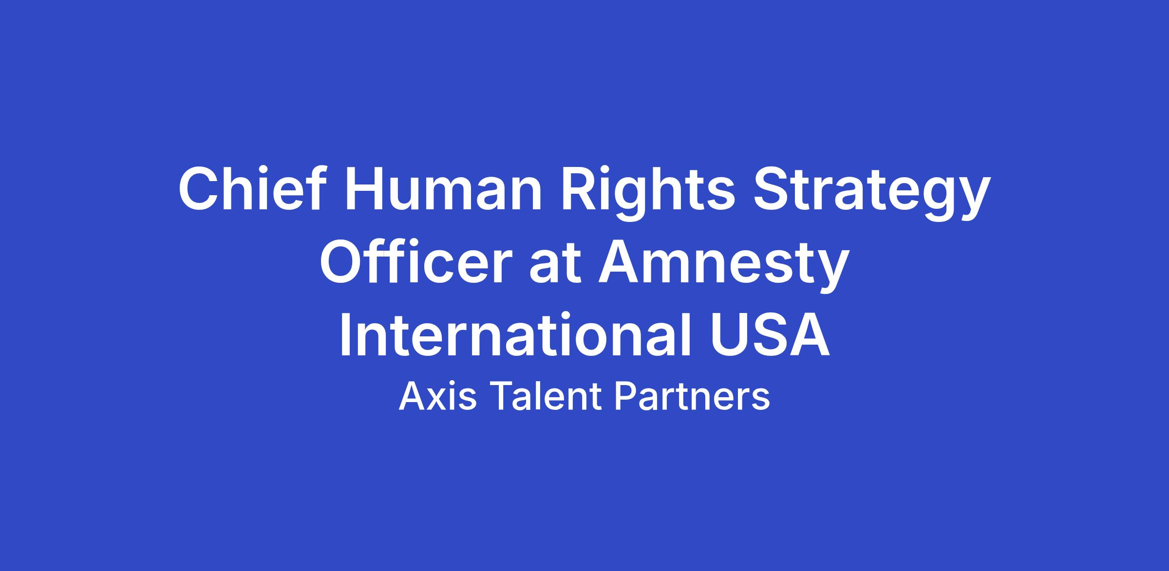 The Chief Human Rights Strategy Officer (CHRSO) will join the Executive Team (E-team) of AIUSA, reporting to the Executive Director, at a time when our work has never been more urgent, both domestically and globally.