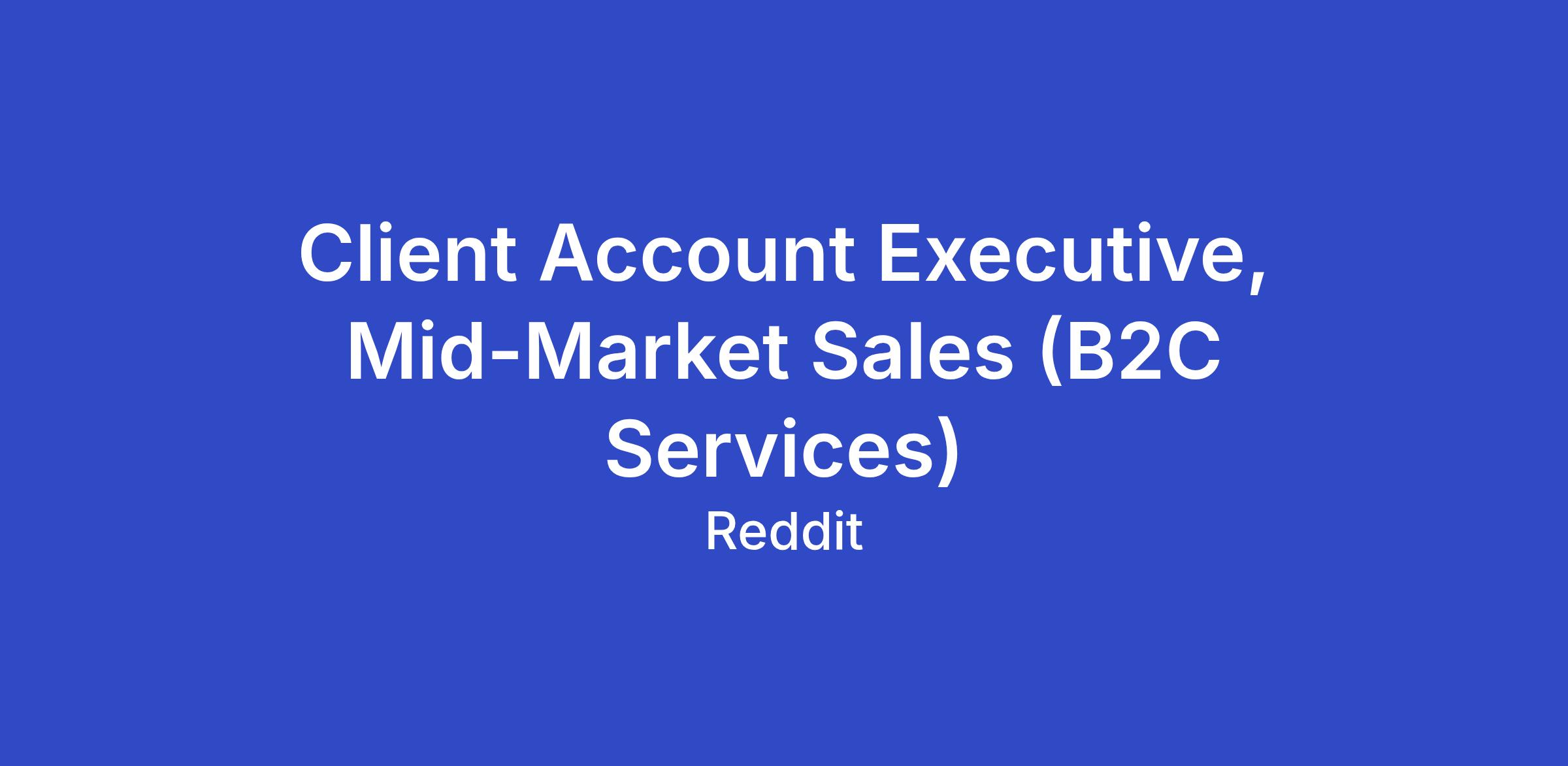 As a Client Account Executive, you will have end-to-end ownership to grow and retain your book of business across the B2C Services segment. You will drive strategic conversations, guide campaign execution, and partner cross-functionally to help advertisers succeed on Reddit. You'll work closely with a team of Account Strategists to scale your impact across a dedicated book of business. The ideal candidate thrives in a fast-paced, consultative environment and enjoys taking ownership, building deep client relationships, and turning insights into action.