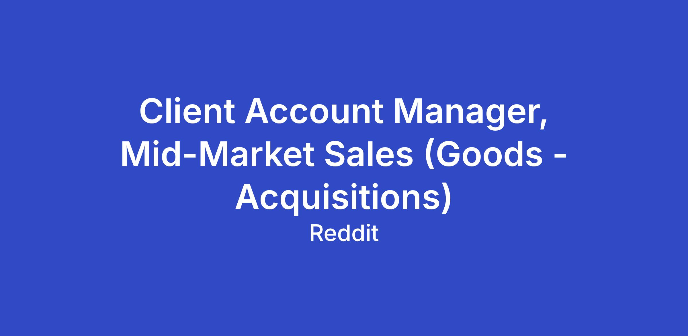 Client Account Manager, Mid-Market Sales (Goods - Acquisitions)