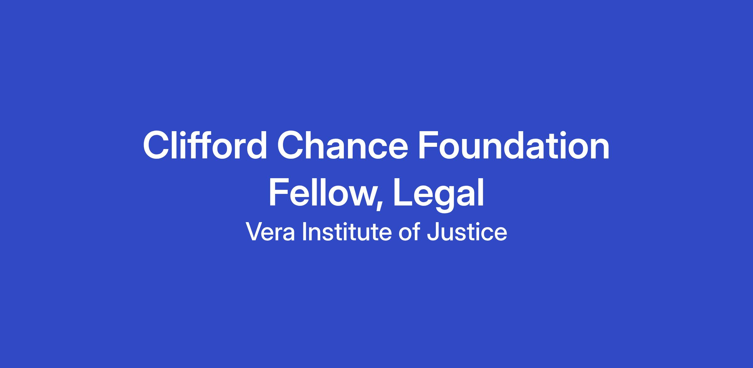 The Clifford Chance Foundation Fellowship at Vera, generously funded by the Clifford Chance Foundation, will permit one Fellow to spend a year in residence as a full-time member of Vera’s Legal Department, working closely with Vera’s Chief Legal Officer and staff. The one-year Fellowship term will begin in early September 2026 and is open to recent law graduates; law students graduating in 2026 are strongly encouraged to apply.