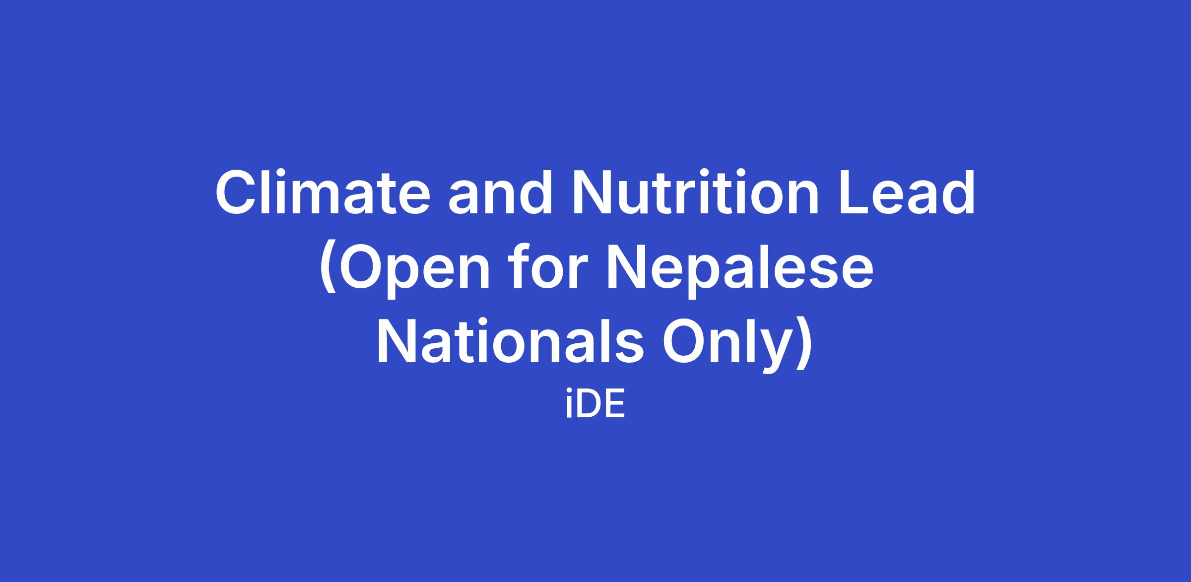 Climate and Nutrition Lead (Open for Nepalese Nationals Only)