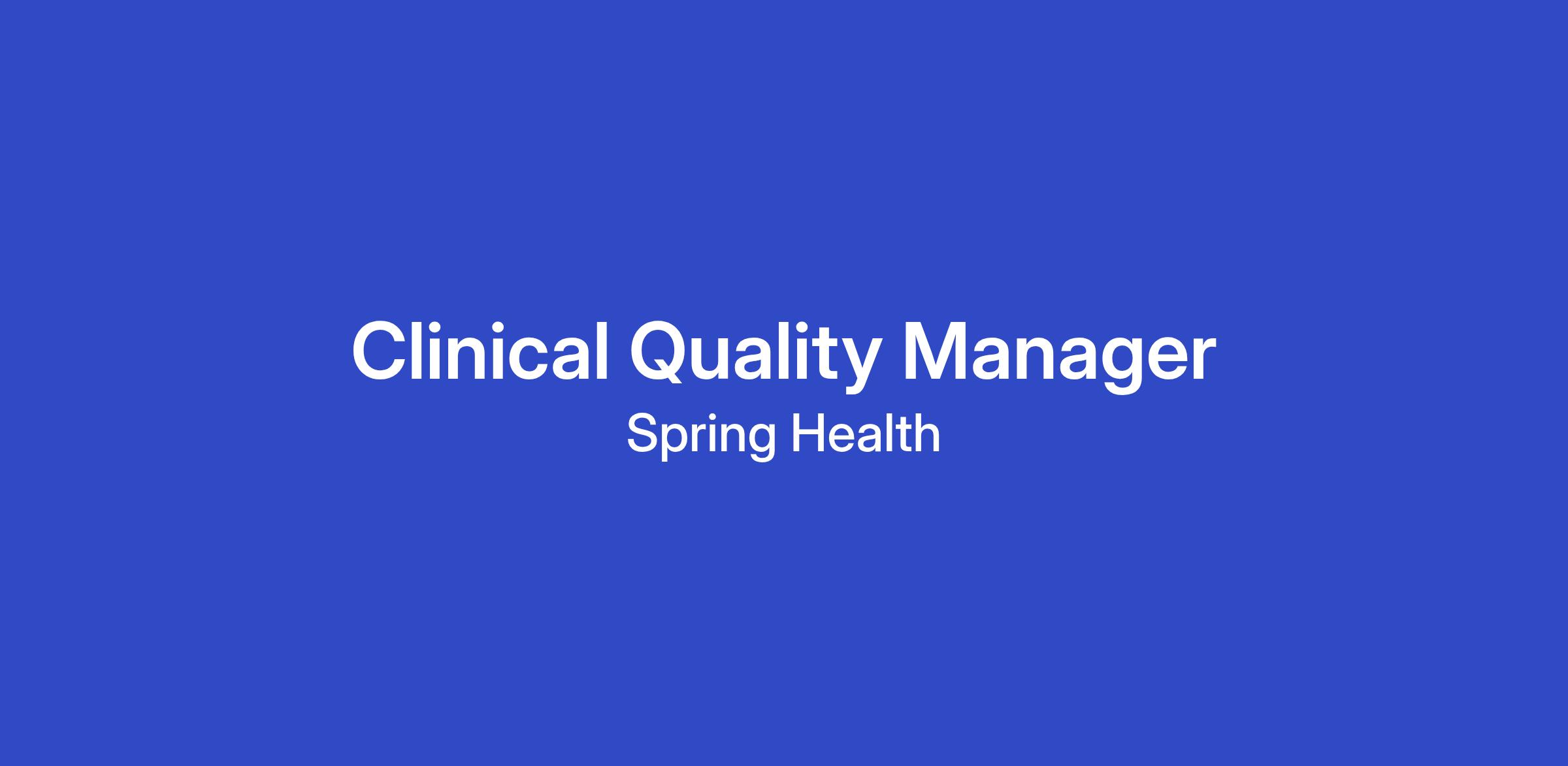Reporting to the Senior Director of Clinical Quality and Safety on the Medical Affairs team, the Clinical Quality Manager will be responsible for investigating care quality and care service escalations as well offering outstanding guidance and consultation as part of our performance improvement efforts for providers. You’ll work closely with our providers, care support teams, care operations teams, and our quality team to improve care delivery at Spring Health. This is a full time remote position on our team and may require occasional travel for company or team events.
