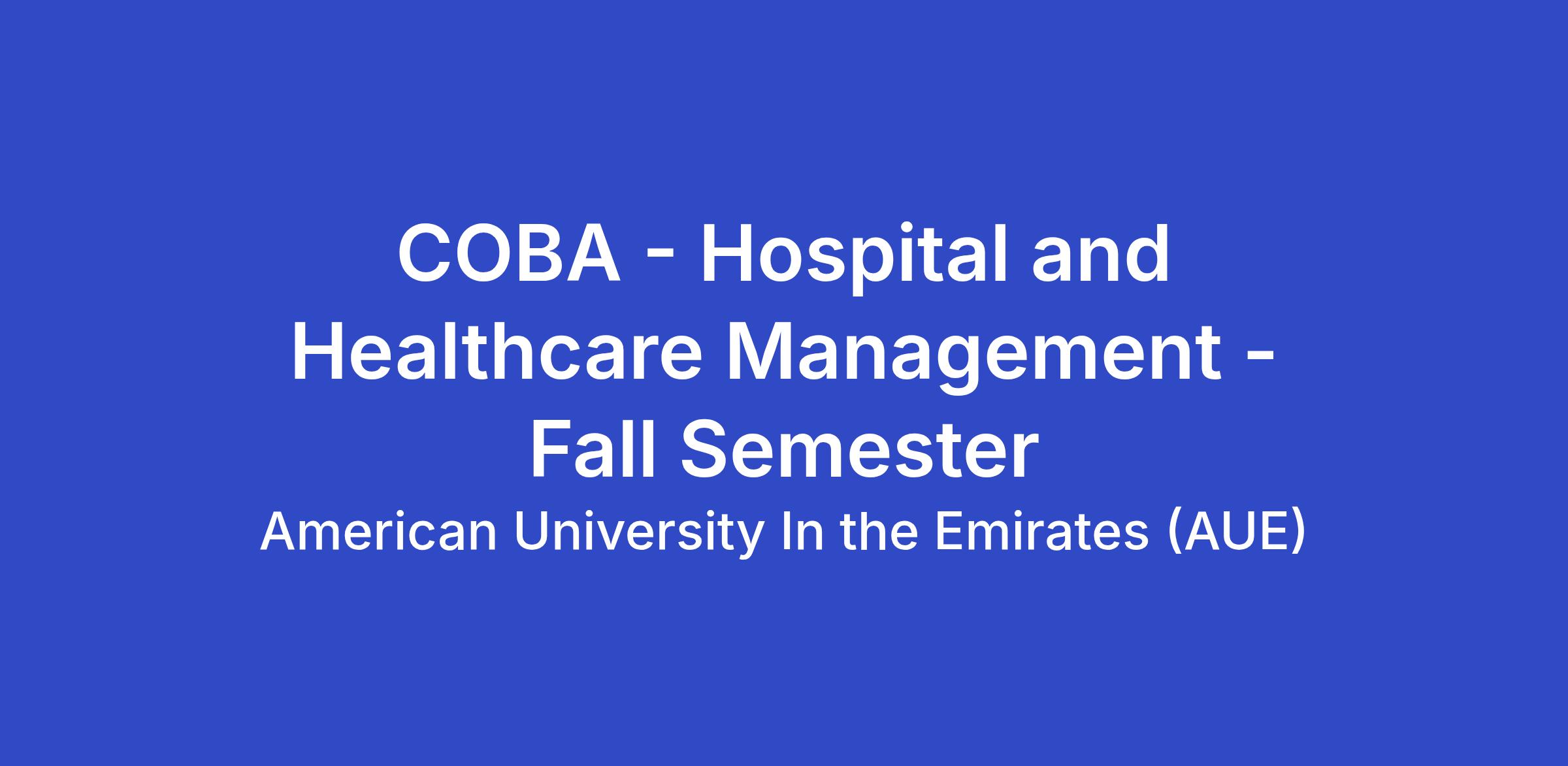 The College of Business Administration at the American University in the Emirates (AUE), accredited by AACSB, invites applications for a full-time faculty position at the rank of Assistant Professor in Hospital and Healthcare Management