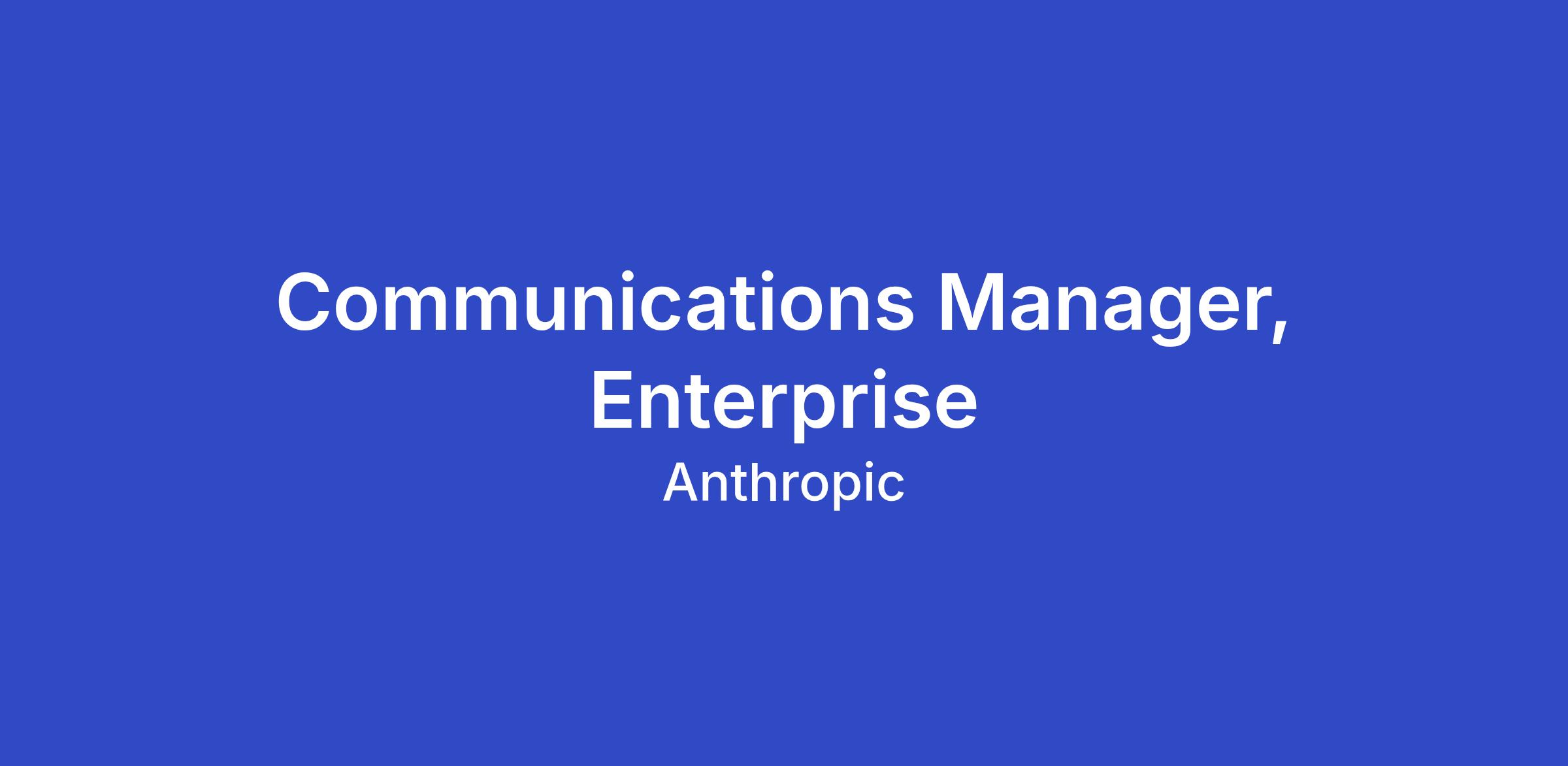 Anthropic is looking for an Enterprise Communications Manager to drive communications strategy and execution across our enterprise business. This is a central role in how Anthropic shows up with enterprise customers, partners, and buyers.