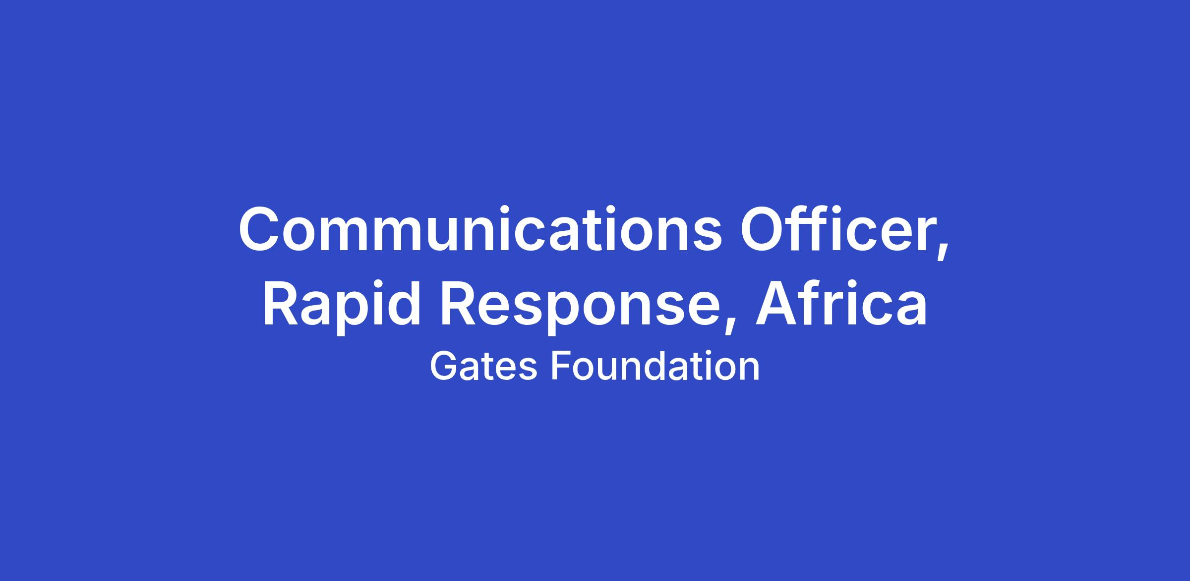The Communications Officer, Rapid Response, Africa will be a key member of the global Strategic Communications team. They will have a passion for proactive management of foundation reputation in earned media, and leading strategic efforts to anticipate, mitigate, and react to reputational risk issues in African markets and contribute to global issue management. They will coordinate with teams across the foundation, including other Communications colleagues in the Africa Regional Office, and with Gates Foundation affiliate organizations, grantees and partners in their approach to earned media engagement.
