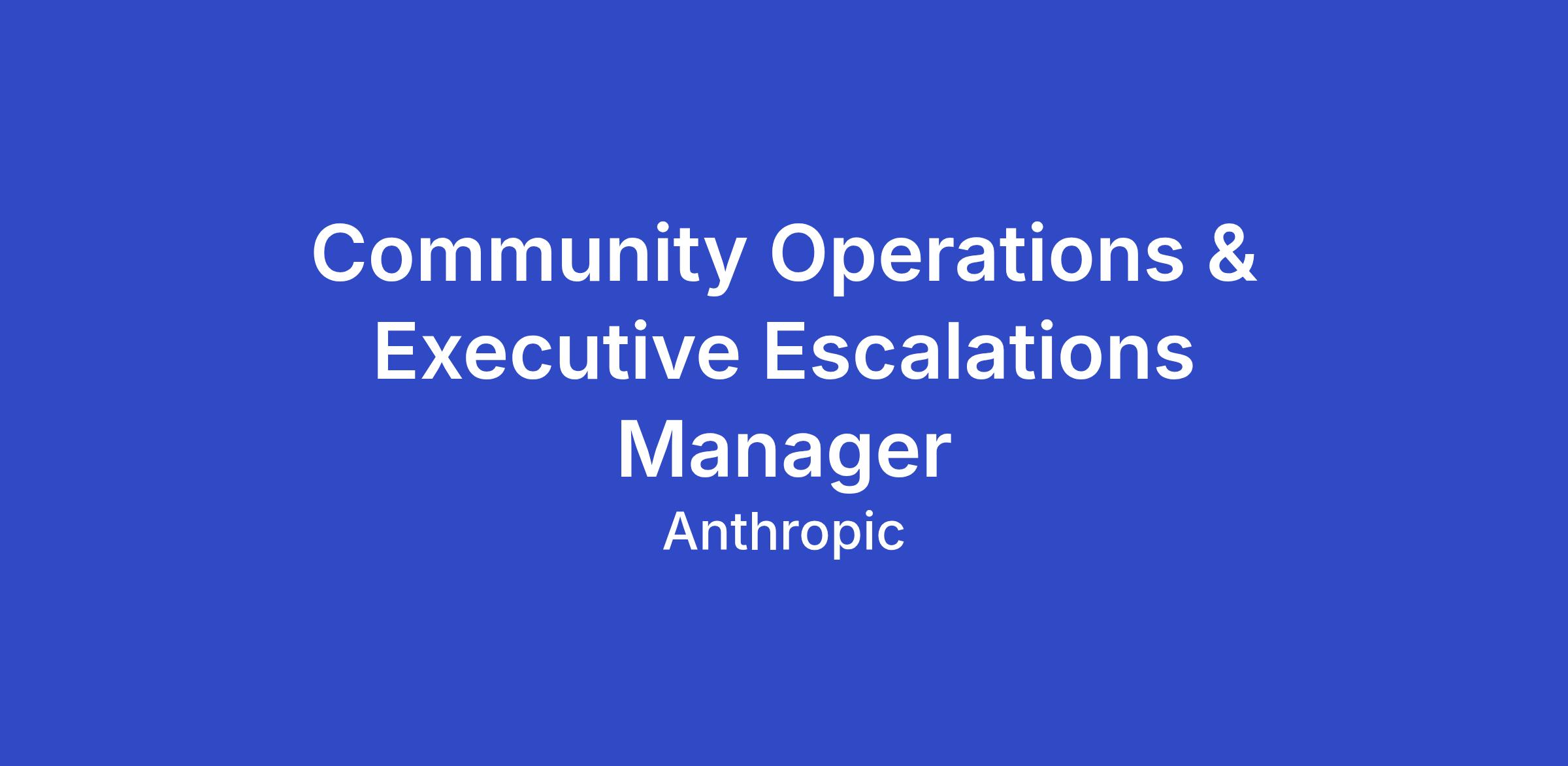 We are seeking an Operations Manager to build and lead a new pillar of our Platform Operations function: Community Operations & Executive Escalations. This role will stand up the team, processes, and infrastructure that protect Anthropic's reputation when high-stakes user issues surface on social media or arrive through executive channels. You'll own end-to-end escalation management - detection, triage, incident coordination, and resolution- across two distinct but related workstreams: brand-impacting conversations on public social channels and high-sensitivity inbound from Anthropic employees on behalf of users. The ideal candidate combines calm-under-fire incident judgment with the operational rigor to build durable systems.