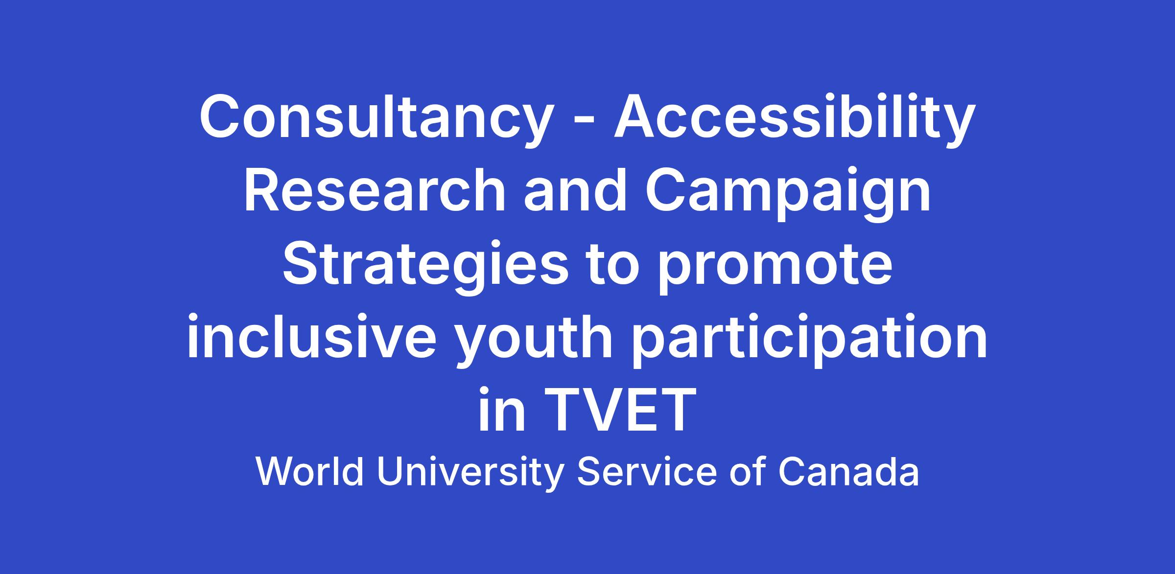 Position Title : Consultant(s) - Accessibility Research and Campaign Strategies to promote inclusive youth participation in TVET