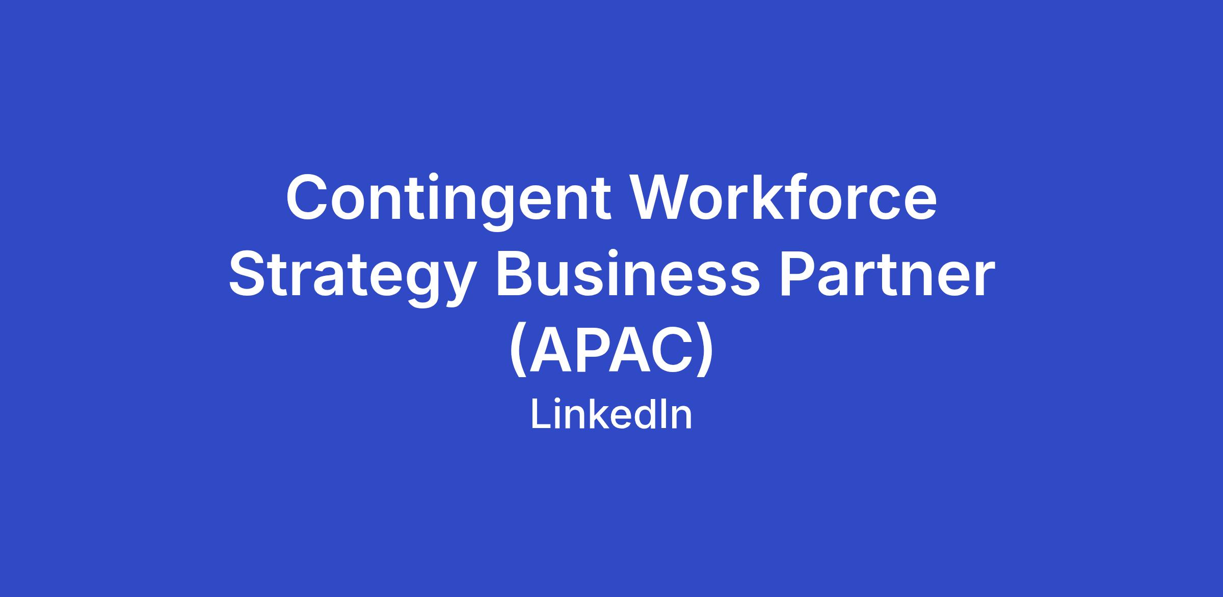 Contingent Workforce Strategy Business Partner (APAC)