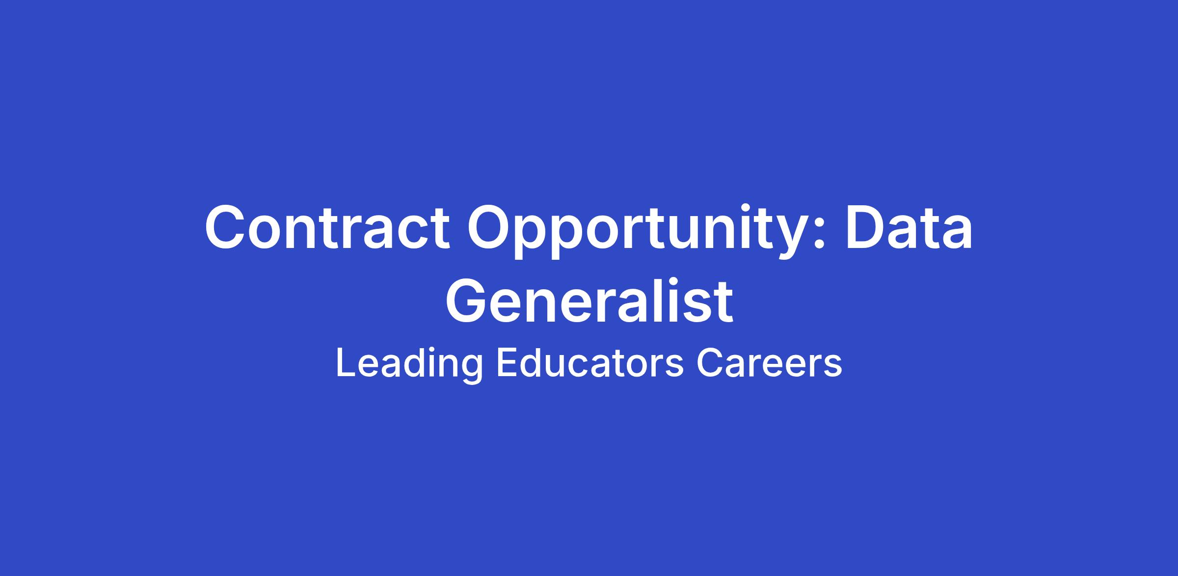 Leading Educators’ Research and Data team is seeking a detail-oriented Data Generalist to support short-term research and data operations work during a high-priority period. This contractor will play a key role in ensuring research projects move forward smoothly by managing logistics, coordinating data collection, and supporting analysis and reporting efforts.