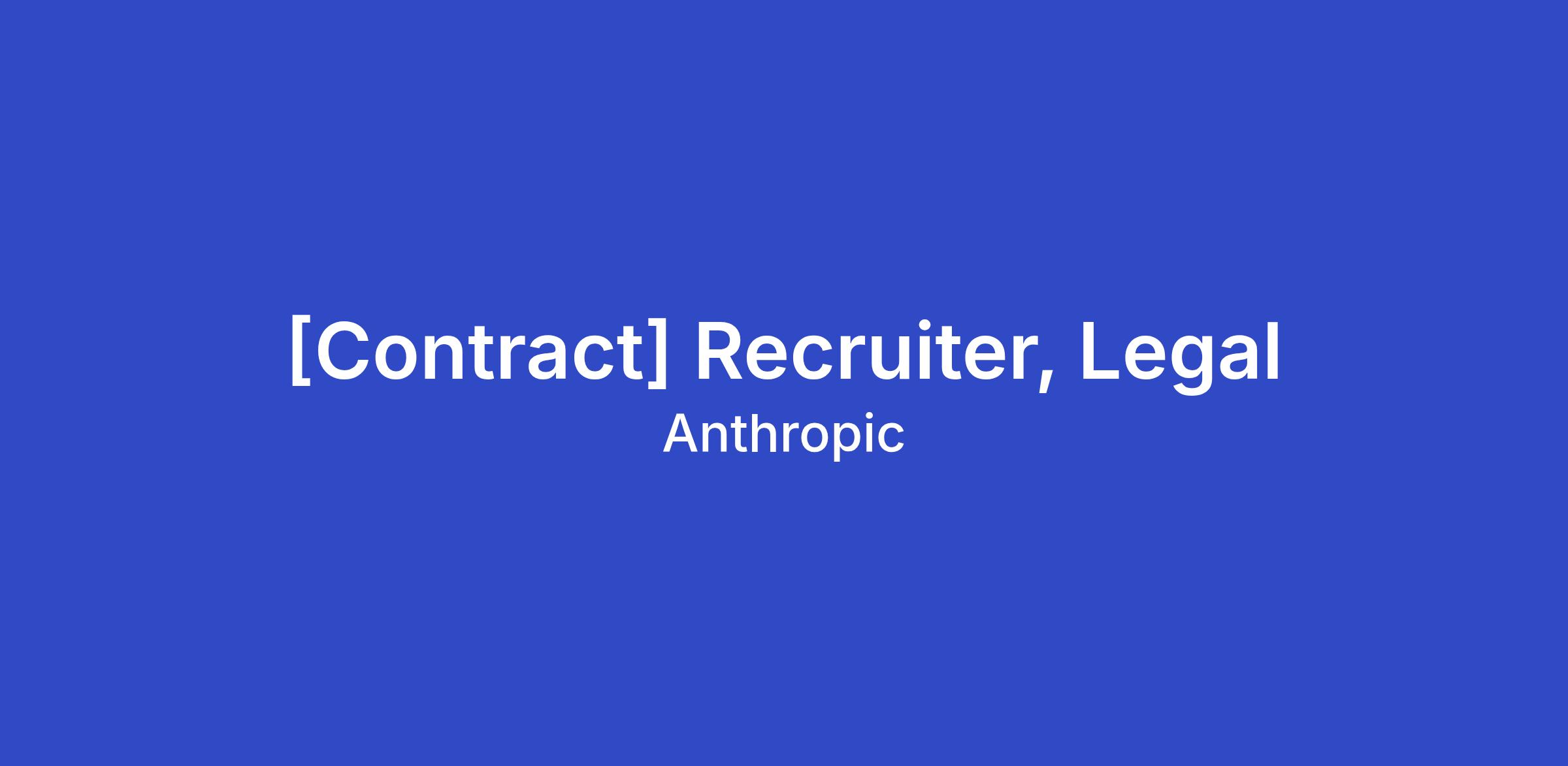 Anthropic is seeking an experienced contract Legal Recruiter to join our G&A recruiting team on a contract basis. In this role, you’ll partner closely with leaders across our Legal organization that shapes how Anthropic operates and delivers on its mission.
