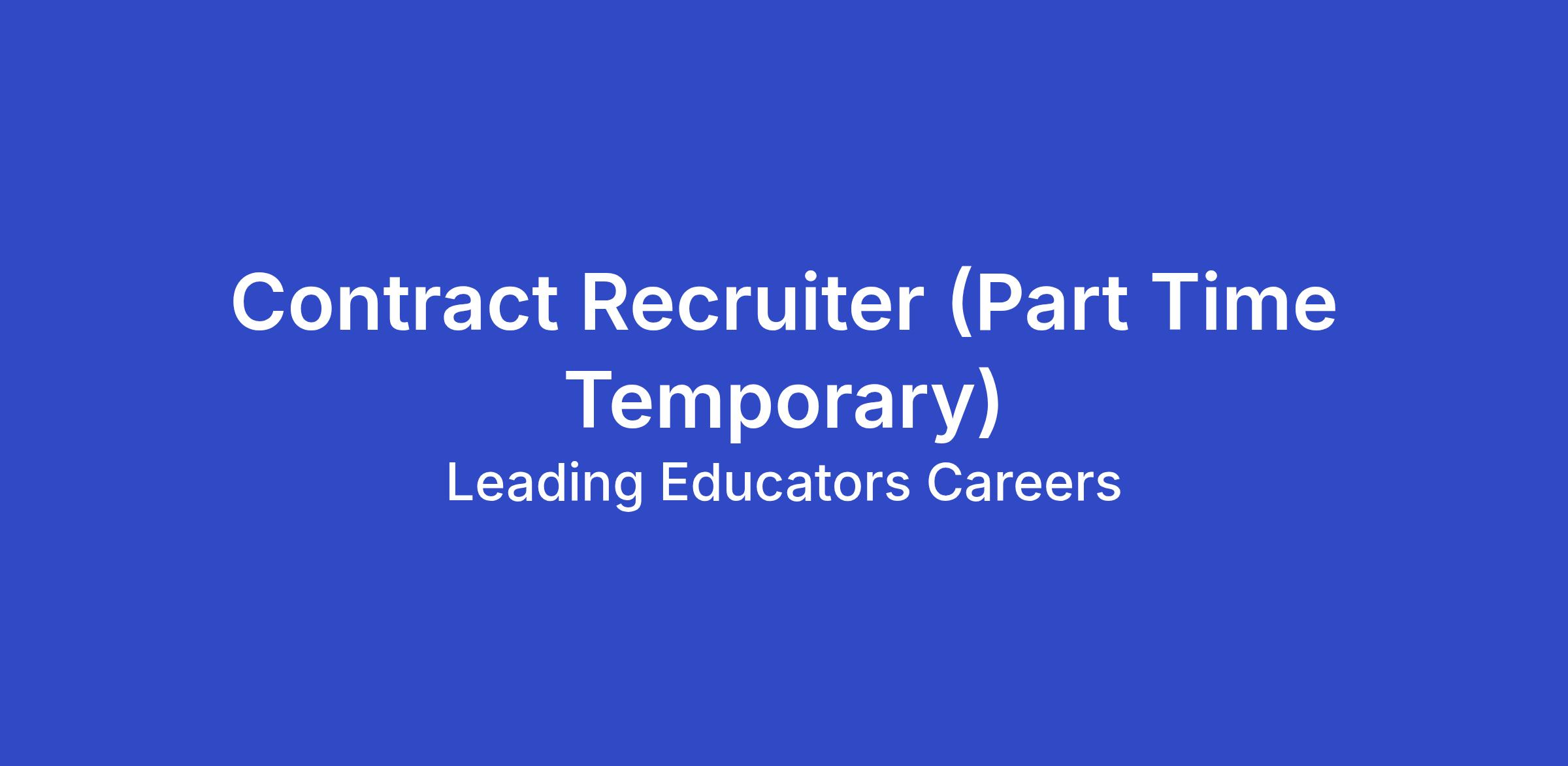 Leading Educators is seeking a Temporary Part Time Contract Recruiter to support our recruiting efforts during a high volume hiring period.
