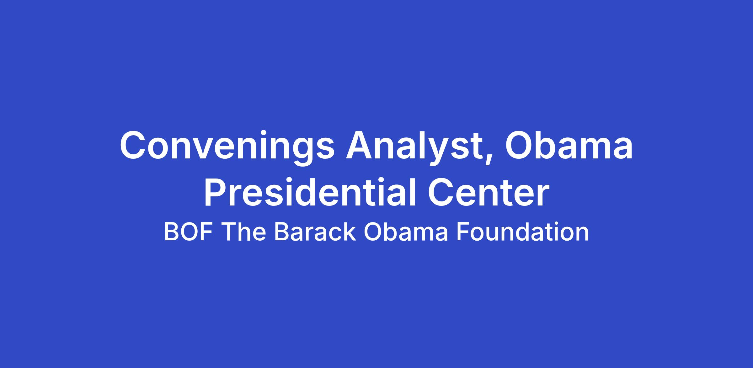 This is an in-office role based at the Obama Presidential Center in Jackson Park.