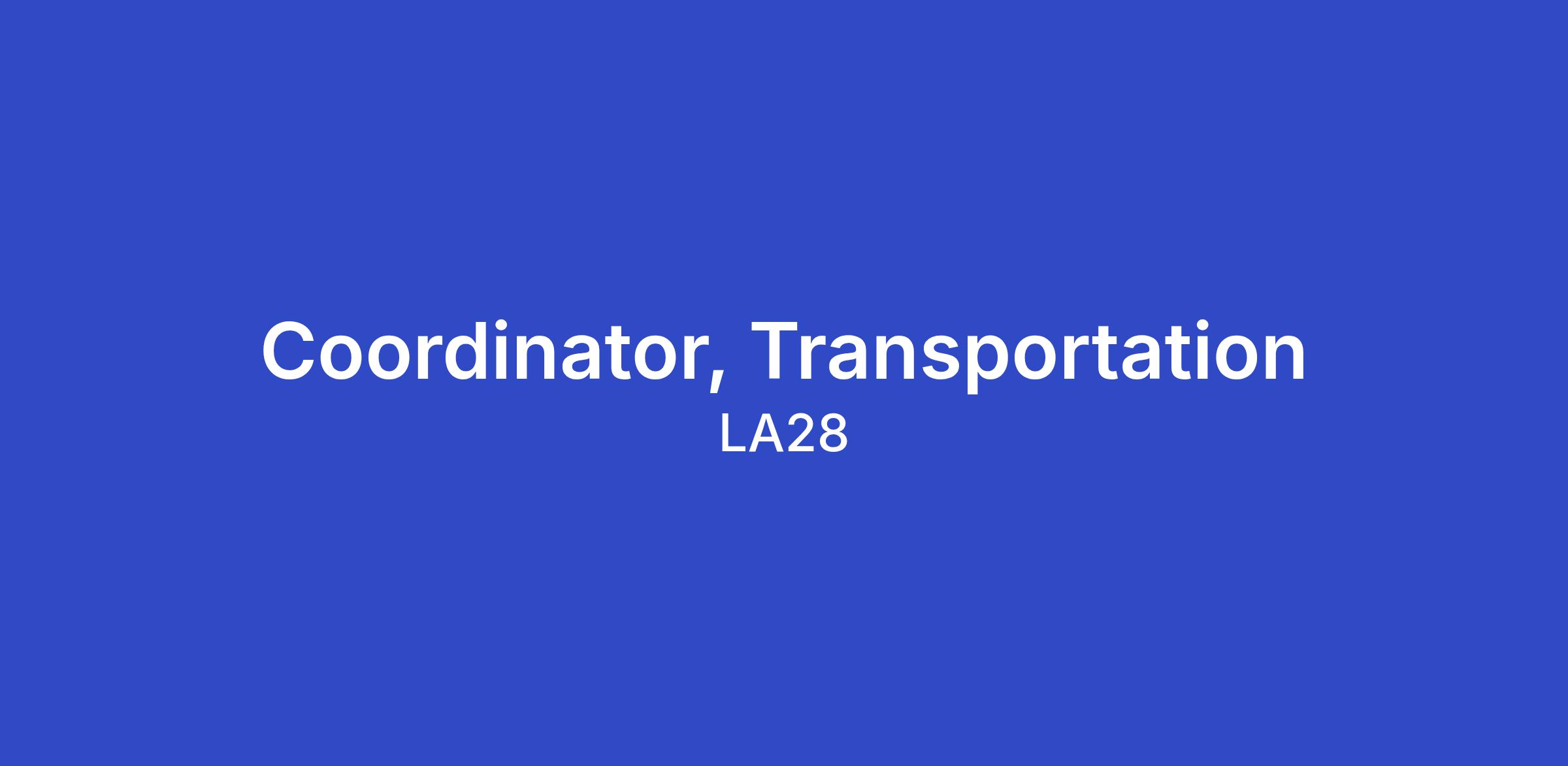 LA28’s Coordinator, Transportation will support the identification, specification, implementation, and delivery of stakeholder transportation services. Stakeholder transportation services are defined as those transportation services offered to the diverse Olympic and Paralympic stakeholders as a part of LA28’s obligations under the International Olympic Committee’s award of the 2028 Summer Olympic and Paralympic Games. The role requires both technical knowledge of key transportation operations as well as soft skills to support LA28’s overall interactions with Games stakeholders. This candidate should be proactive, organized with strong communication skills. LA28’s Coordinator, Transportation will report directly to LA28’s Manager or Associate, Transportation while working closely with the leaders across LA28’s Functional Areas.