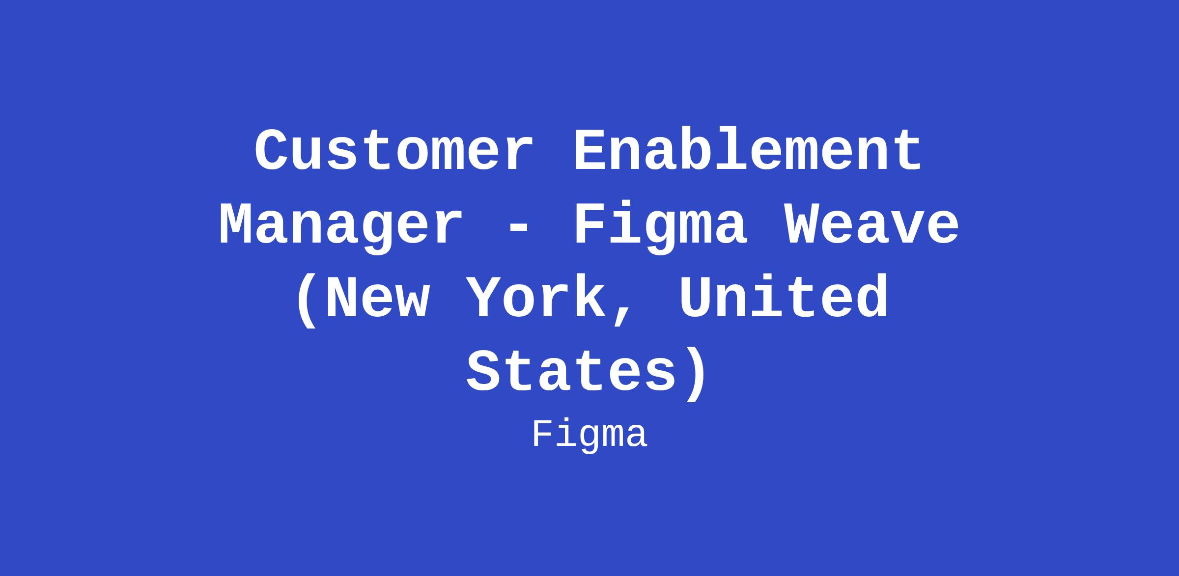 As a Customer Enablement Manager, you’ll work directly with our larger customers to help them get the most value from the Figma Weave platform. You'll design and deliver tailored enablement strategies that drive product adoption, help uncover new use cases, and support long-term success.