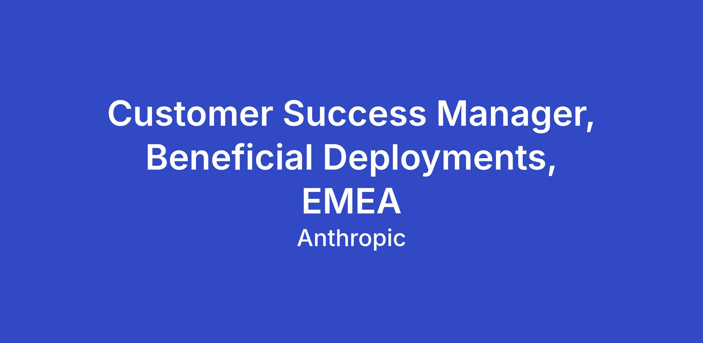 Join Anthropic’s Customer Success team as an EMEA Based Customer Success Manager supporting our Beneficial Deployments initiatives. In this role, you’ll apply enterprise-grade customer success practices to partnerships with mission-driven organizations. Anthropic’s Beneficial Deployments team is focused on building AI for good through partnerships with high-impact organizations across education, public health, life sciences, economic mobility, and more. As the dedicated Customer Success Manager, you’ll be the strategic partner and trusted advisor across EMEA - helping them harness Claude’s full potential of all our Claude capabilities - API, Claude for Enterprise, and Claude Code to amplify their social impact across program delivery, research, fundraising, and operations.