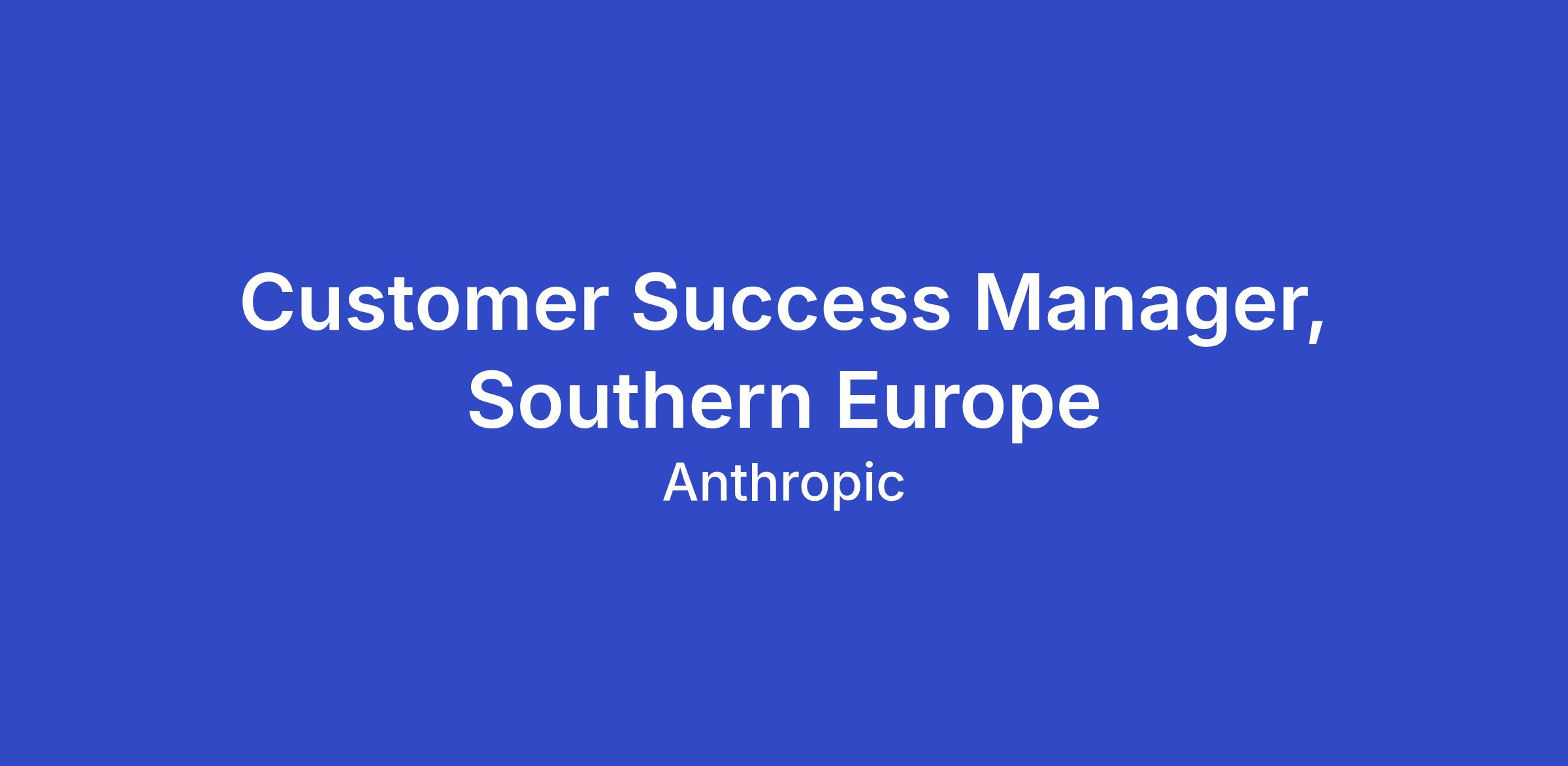 Join Anthropic's Customer Success team as an EMEA based Customer Success Manager as we pioneer the future of enterprise AI adoption. As a Customer Success Manager at Anthropic, you'll be the strategic partner and trusted advisor to our most complex customers across EMEA helping them harness the full potential of all our Claude capabilities - API, Claude for Enterprise, and Claude Code.