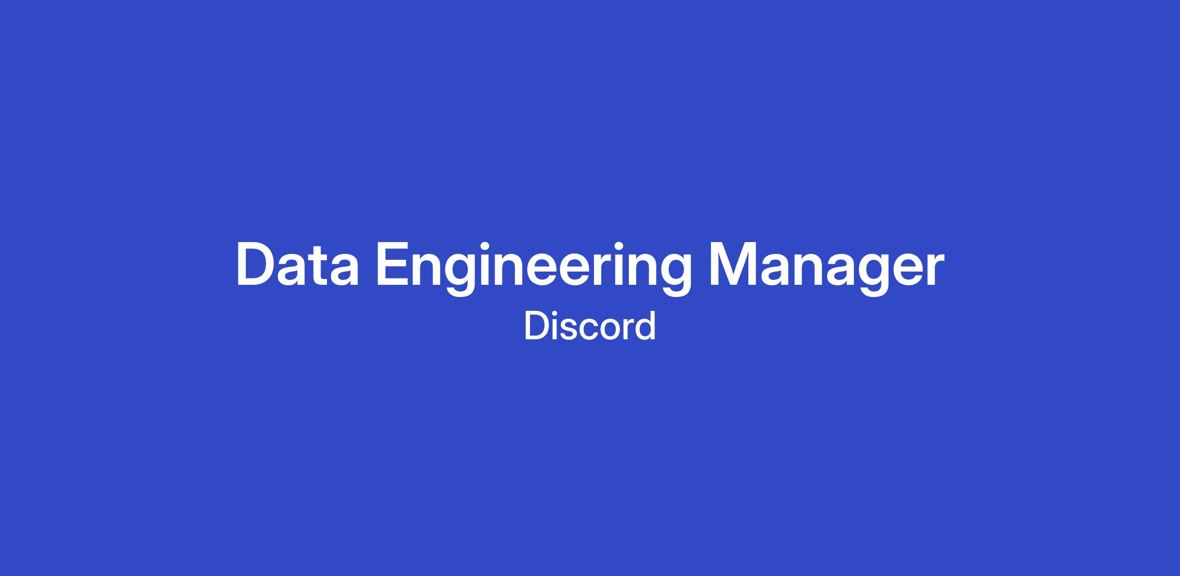 Discord is looking for an experienced manager to join our Data Engineering function! Data Engineers at Discord collaborate with data science and engineering teams to design, build, and scale high-leverage datasets that enable analytics, modeling, and experimentation. As a Data Engineering Manager, you will establish and drive a vision for data architecture and data quality across multiple company verticals. If this sounds exciting to you and you're passionate about data, impact, and leading an amazing team, read on!