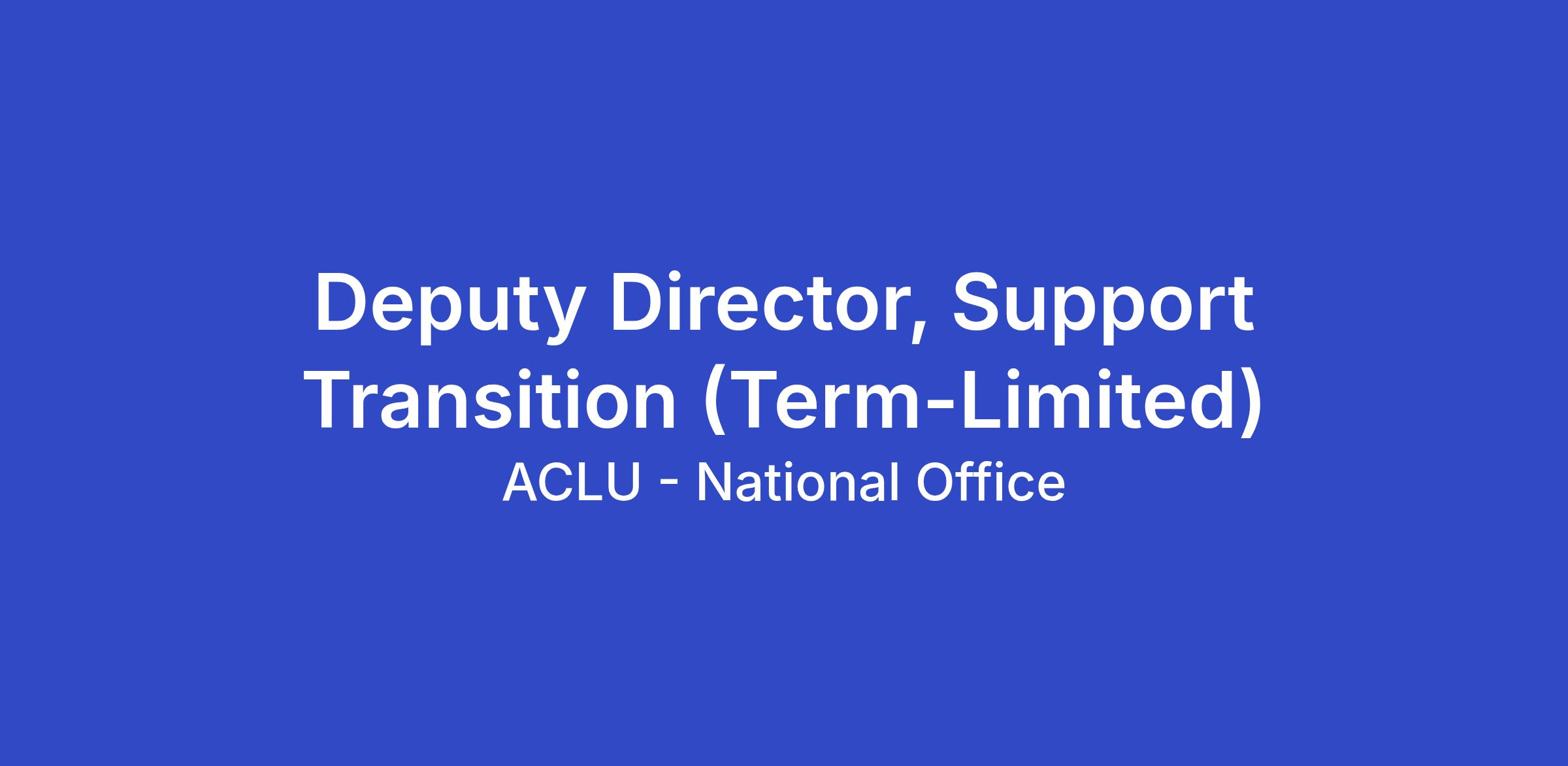 The ACLU seeks applicants for the full-time position of Deputy Director, Support Transition in the Development Department of the ACLU’s National office in New York, NY. This is a hybrid role that has in-office requirements of two (2) days per week or eight (8) days per month. This is an 18-month term-limited position.