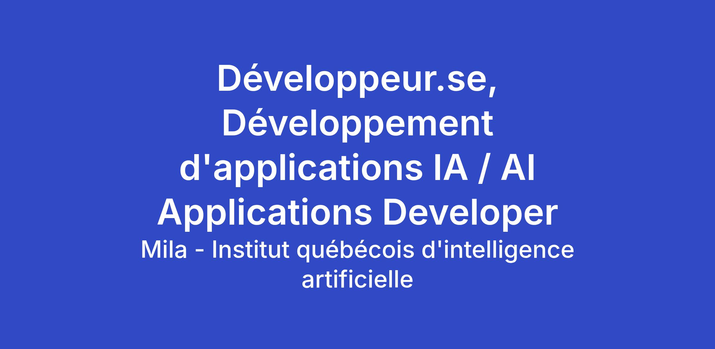 The AI Applications Development (AAD) team builds real-world applications powered by Generative AI and machine learning. We partner with AMLRT, Studios, and internal Mila teams to turn research ideas and prototypes into high-quality, production-ready software.