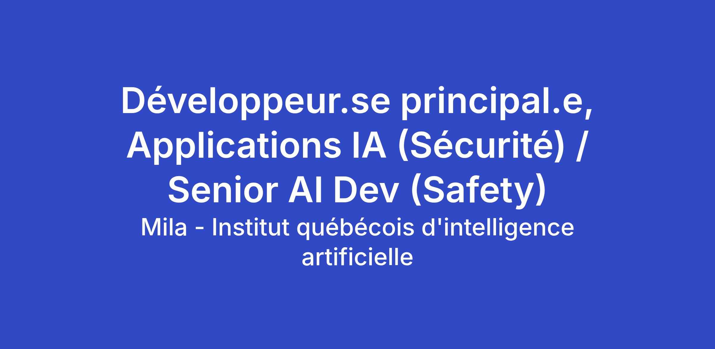 En tant que développeur.se principal.e, vous serez affecté.e au Studio Sécurité de l'IA, où vous contribuerez à la conception et au développement d'une plateforme d'évaluation open source mesurant la sécurité et la robustesse comportementale des agents IA. La plateforme évalue les agents en boîte noire en les soumettant à des scénarios adversariaux et en mesurant objectivement leur résistance. La feuille de route couvre l'évaluation de la résistance aux injections conversationnelles, la sécurité des appels d'outils, l'application de politiques de capacité, et la sécurité des systèmes multi-agents. Vous porterez la vision technique de cette plateforme de sa première livraison jusqu'à sa maturité.