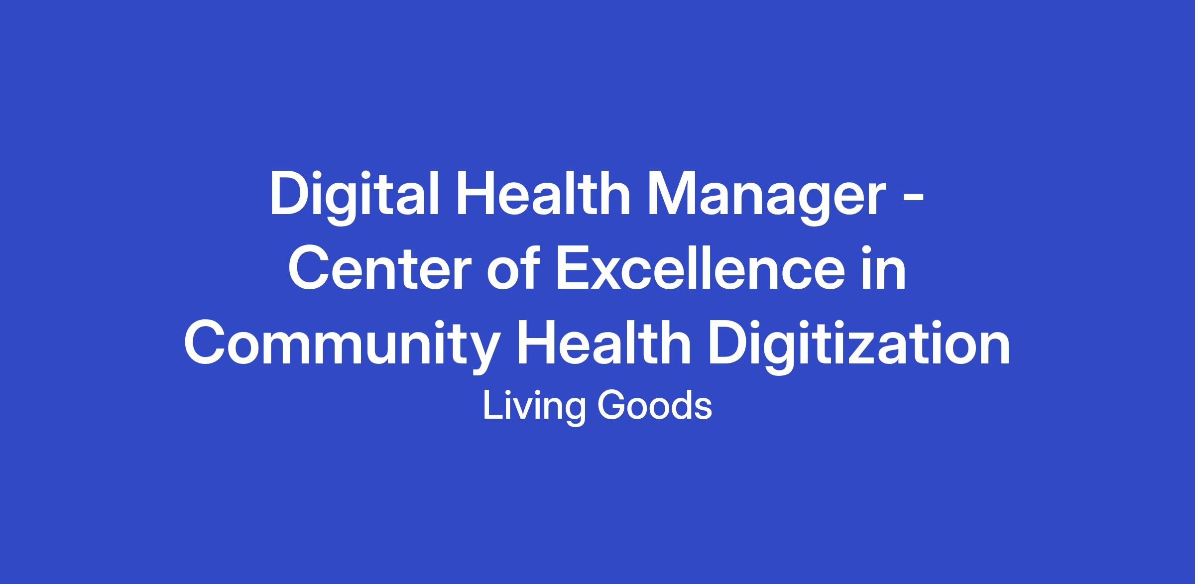 Role: Digital Health Manager - Center of Excellence in Community Health DigitizationLocation: Nairobi, Kenya (hybrid) Reports to: Global Director, Digital Health and Government PartnershipsAbout Living Goods: