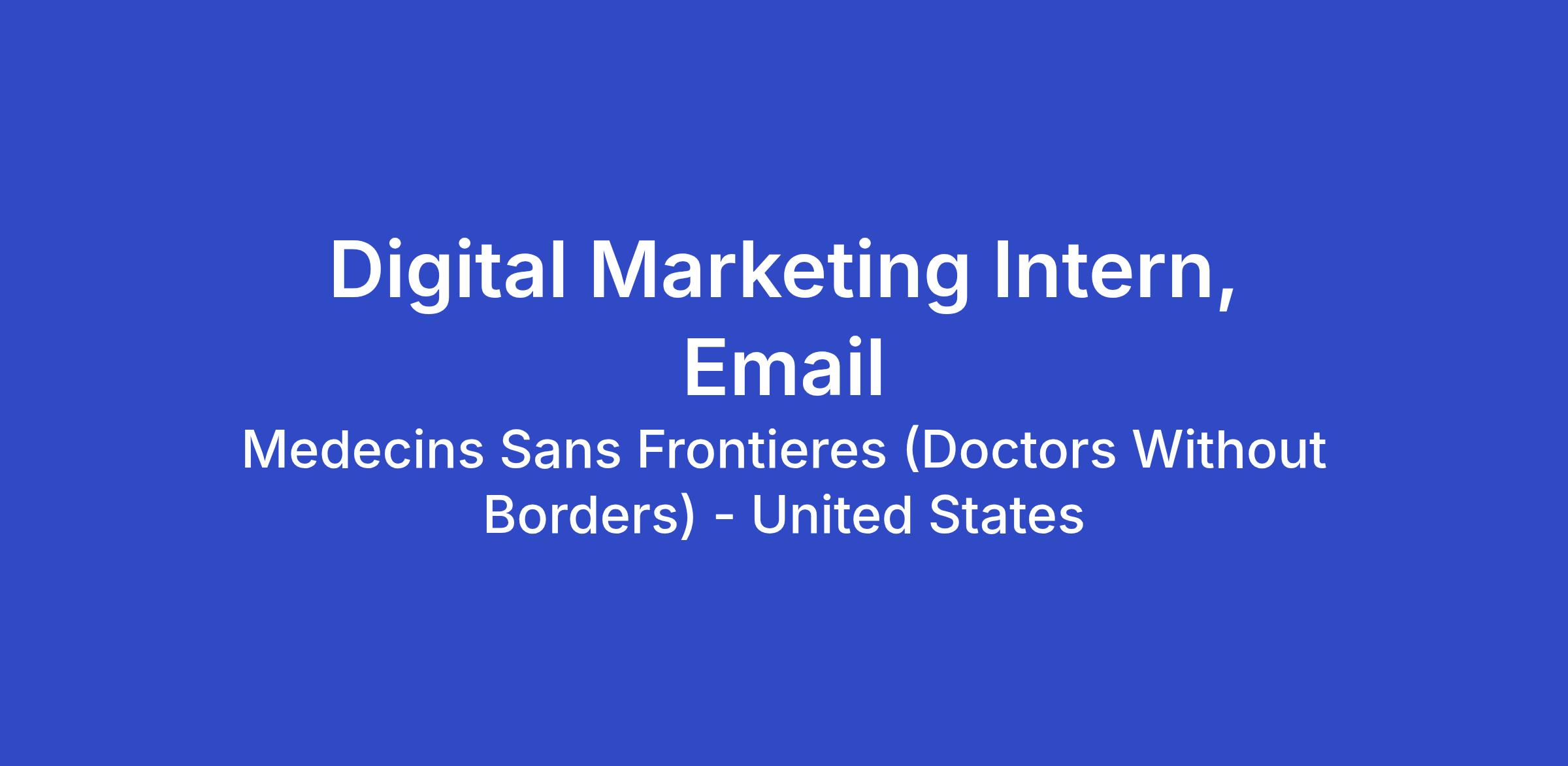 The Digital Marketing Intern’s main priority will be to ensure the smooth execution of the email and SMS program. You will learn how MSF takes an omnichannel, integrated approach to marketing, using available marketing and project management tools and technologies while also innovating to bring the work of MSF to life with the right message at the right time. This internship is ideal for anyone interested in digital fundraising and marketing, as well as the administration of non-governmental organizations (NGOs).