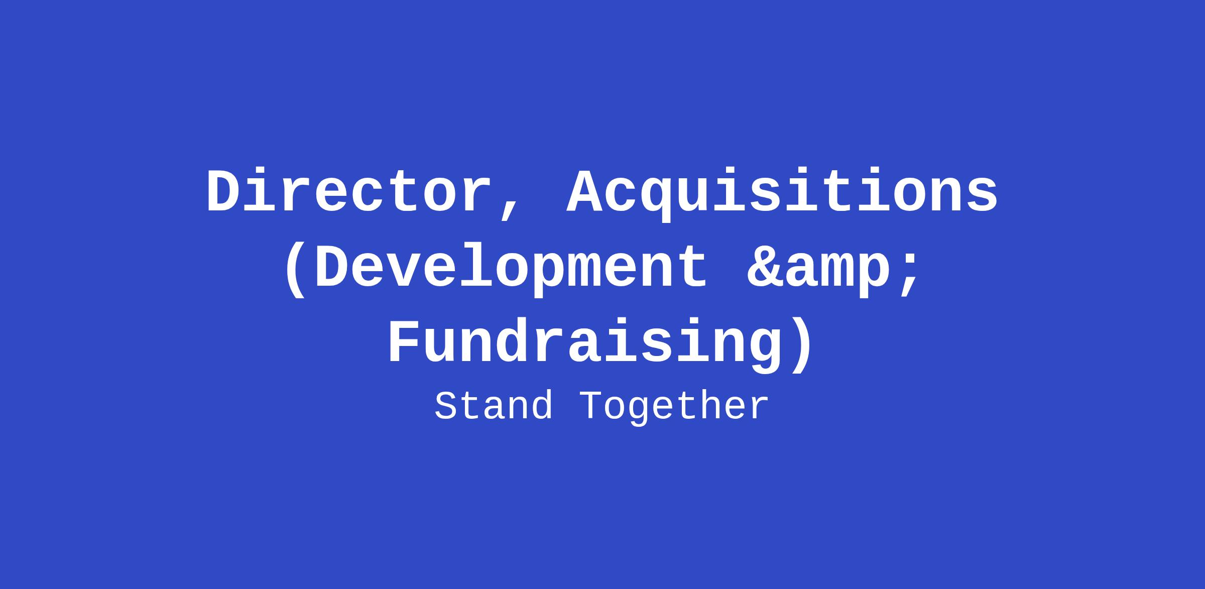 As Director, Acquisitions on our Development team, you will shape and lead our strategy to grow our donor-partner community and Stand Together. Your role will focus on developing the strategies, systems, and pathways for identifying and engaging philanthropists and business leaders who are aligned with Stand Together’s mission — and partnering with donor-facing colleagues to execute these strategies effectively.