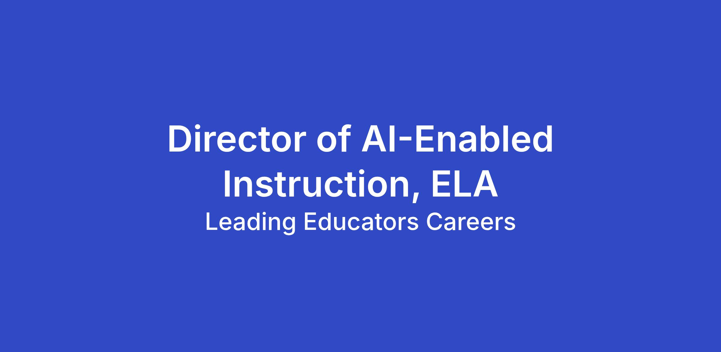 You'll report to the Senior Director of AI-Enabled Instruction, ELA, and operate at the intersection of instruction, innovation, and systems change—where your expertise in ELA content, adult learning, and rapid iteration directly influences how thousands of students experience literacy instruction.