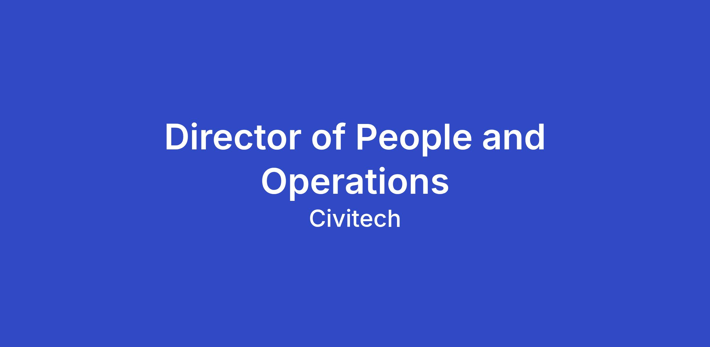 The Director of People & Operations is responsible for leading People, HR and Operational work at a cross functional and strategic level to ensure strength in all aspects of those areas of the business including; talent development & engagement, operational project management and compliance. This dual scope role requires both tactical execution and high-level systems thinking, working closely with the COO, senior managers, and external partners. Civitech is a remote-first company hiring within our current footprint of 27 states (AL, AK, CA, CO, DC, DE, FL, GA, HI, IL, MA, MD, MN, NC, ND, NH, NJ, NV, NY, OH, SD, TN, TX, VA, WA, WI, WY); Civitech does have an office in Austin, TX.