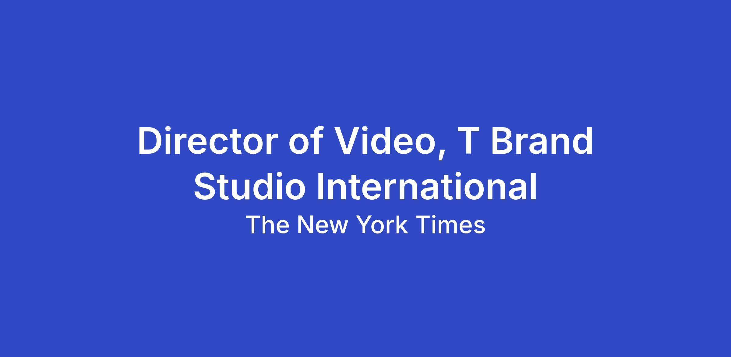 This role will report to the Managing Director of T Brand Studio International based in London, aiming to scale our video creative capabilities, pitching new video creative programs, turning branded podcasts into video shows, building-up our international video vendor network, and executing both short-form and long-form video projects. While this role has no direct people management responsibilities, this role will be integral to building our capabilities and helping T Brand Studio International deliver imaginative, inspired, and meaningful stories for brands to help make their mark on the world.