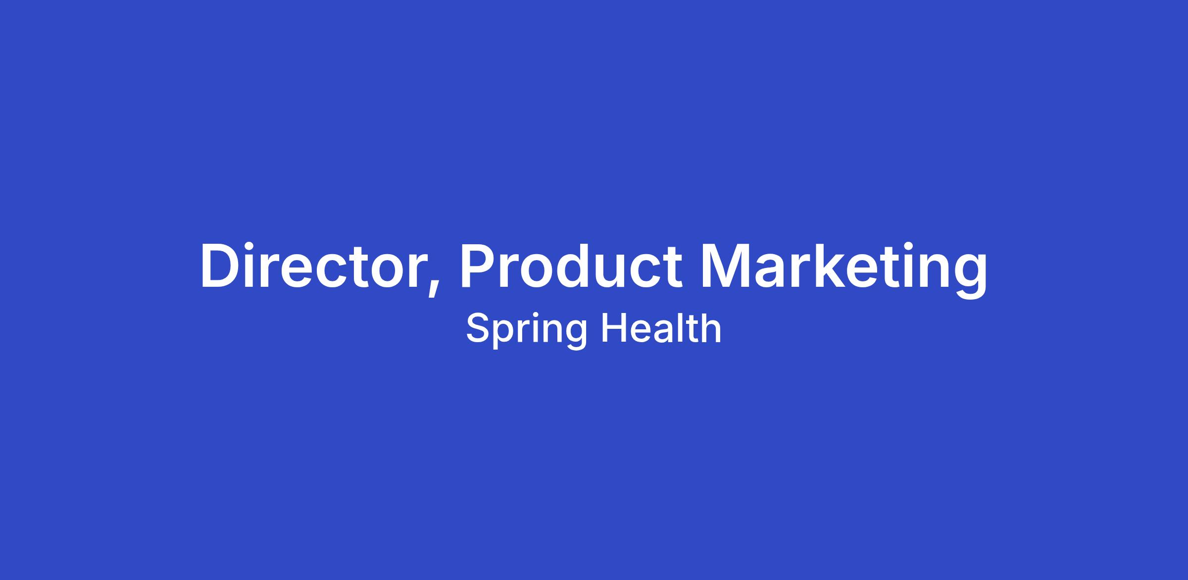 Reporting to the VP of Product Marketing & GTM Enablement, the Director of Product Marketing will define and lead Spring Health’s go-to-market strategy, shaping positioning, messaging, and launch excellence across our platform. This remote role (East Coast preferred) sits at the center of Product, Sales, Customer Success, and Marketing, and plays a critical role in differentiating Spring Health in a highly competitive market while accelerating pipeline growth and customer adoption. This leader combines deep technical fluency with exceptional storytelling, translating complex platform capabilities into clear, compelling narratives that resonate with buyers, customers, Spring Health members, and the broader market. This is a full time, remote position on our team that may require occasional travel for team or company events.