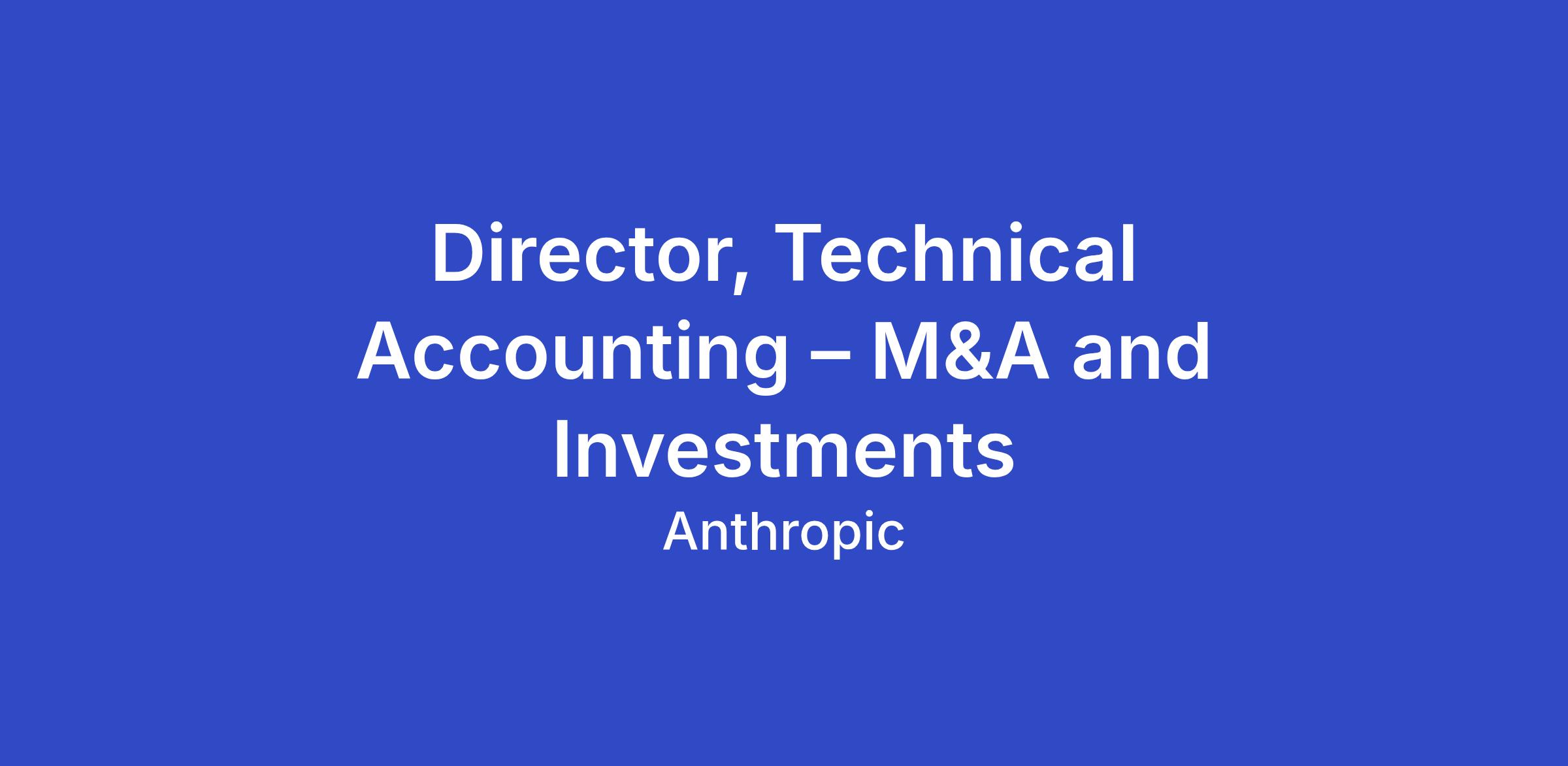We are seeking a Director of Technical Accounting – M&A and Investments to join our Finance team at Anthropic. In this role, you will serve as the company’s principal accounting authority for mergers, acquisitions, strategic investments, and other complex capital transactions. You will own the technical accounting lifecycle for every deal — from term-sheet diligence through purchase accounting, opening balance sheet, and post-close measurement-period adjustments — and you will build the function, playbooks, and team required to execute these transactions with public-company rigor.
